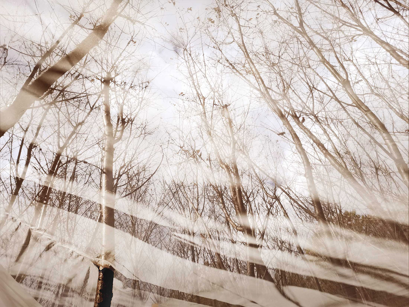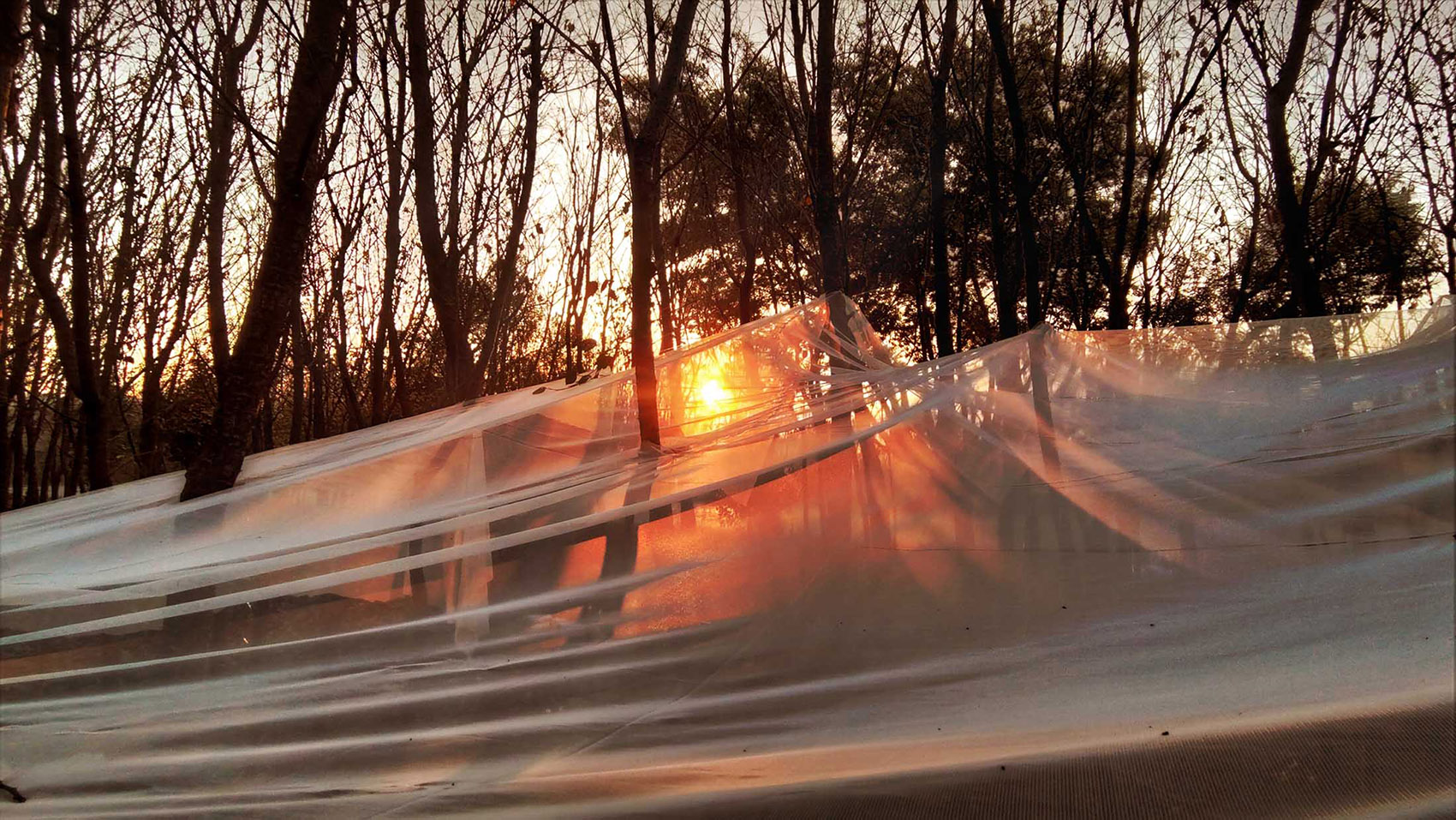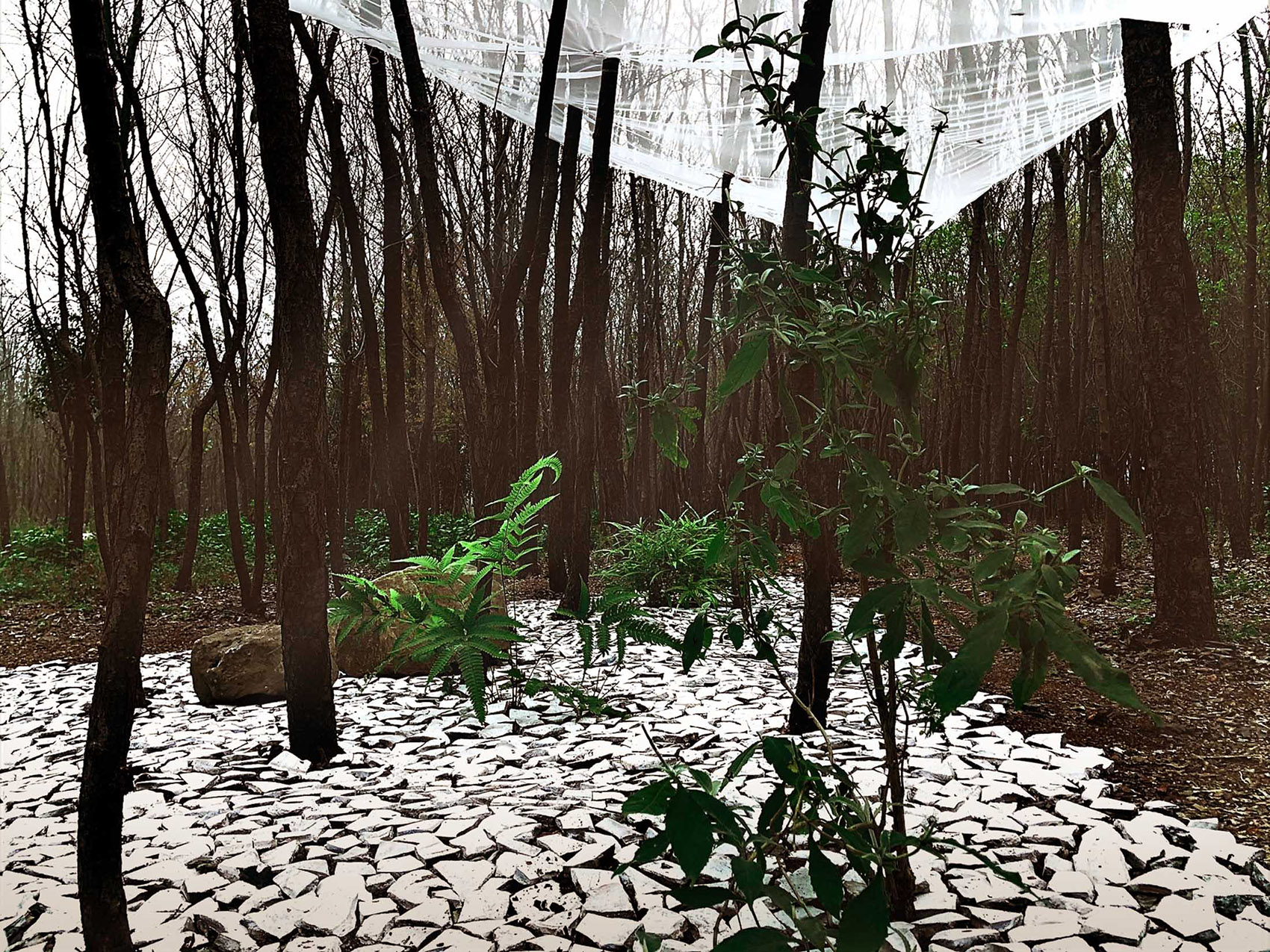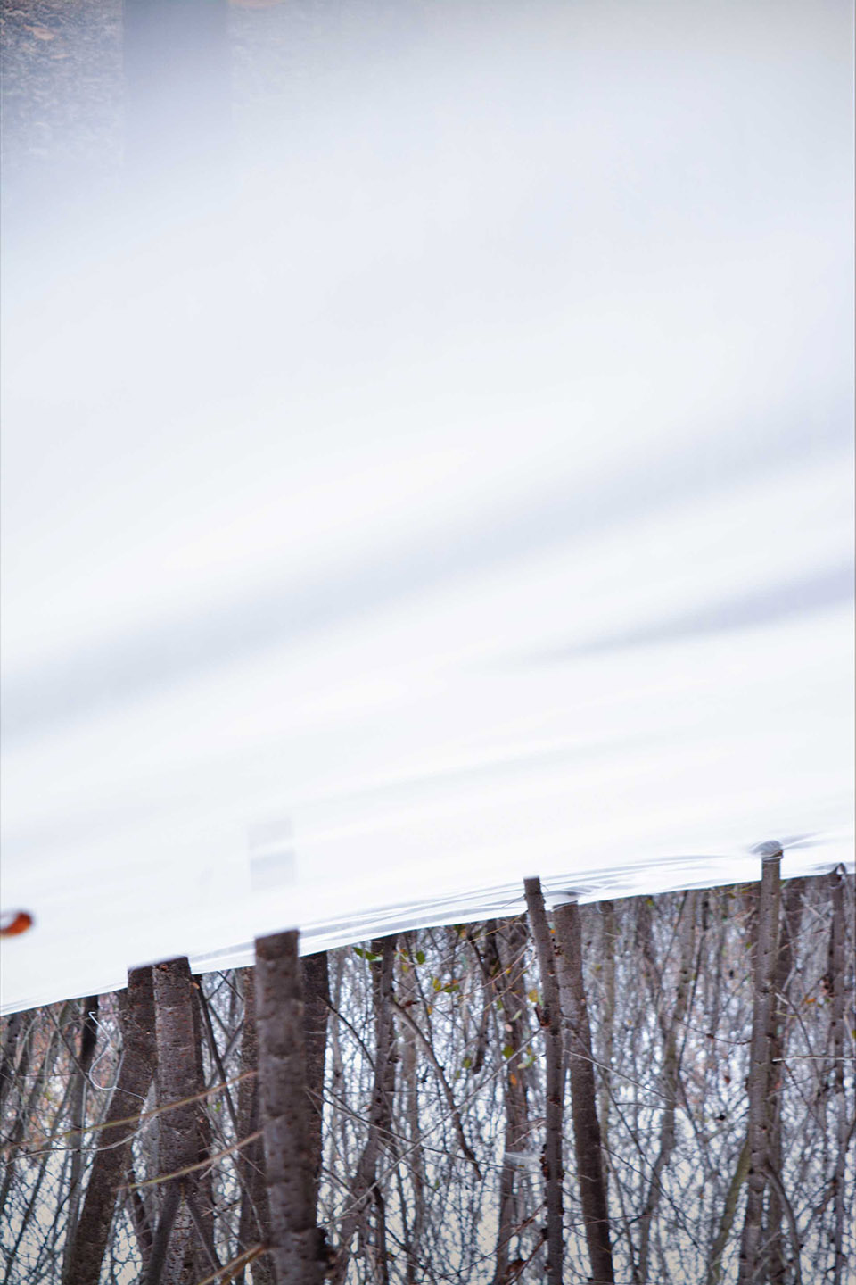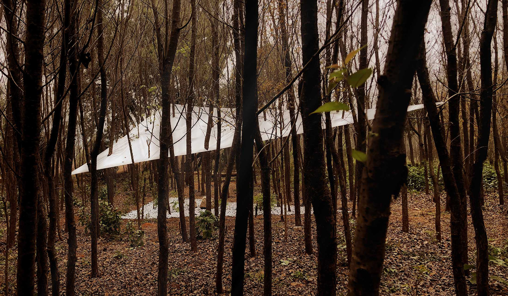 ▲透明白色的布料反射著四季變化的櫻花林,The transparent white cloth reflects the changing seasons of the cherry blossom forest ? Rui Gu