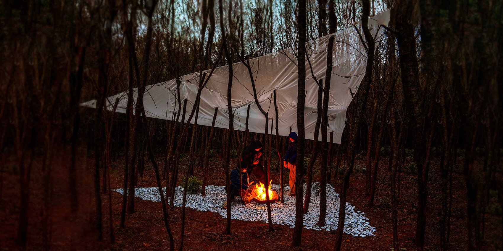 In the center of Tangible Scene, three enormous rocks taken from the local area provide villagers with a place to light a furnace, allowing workers to have a place to rest at night and bring the villagers closer together. Tangible Scene records the beauty of the cherry blossom forest in the past and continues to create more future visions for the villagers.