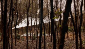 設(shè)計也延續(xù)了這個美麗的傳說,并采用甸苴村當(dāng)?shù)赝咂c手工編織的布料作為主建筑材料。地面以瓦作為櫻花葉掉落在地面所形成卷曲形狀,讓村民在踏入空間時,寧聽踩踏瓦片所產(chǎn)生的自然聲響;頂面以當(dāng)?shù)厥止げ剂纤a(chǎn)生的半透明感,補抓櫻花林一年四季不同的景色變化,讓再度回歸的游人,透過自然皺摺的布料體驗多層次的櫻花景觀。