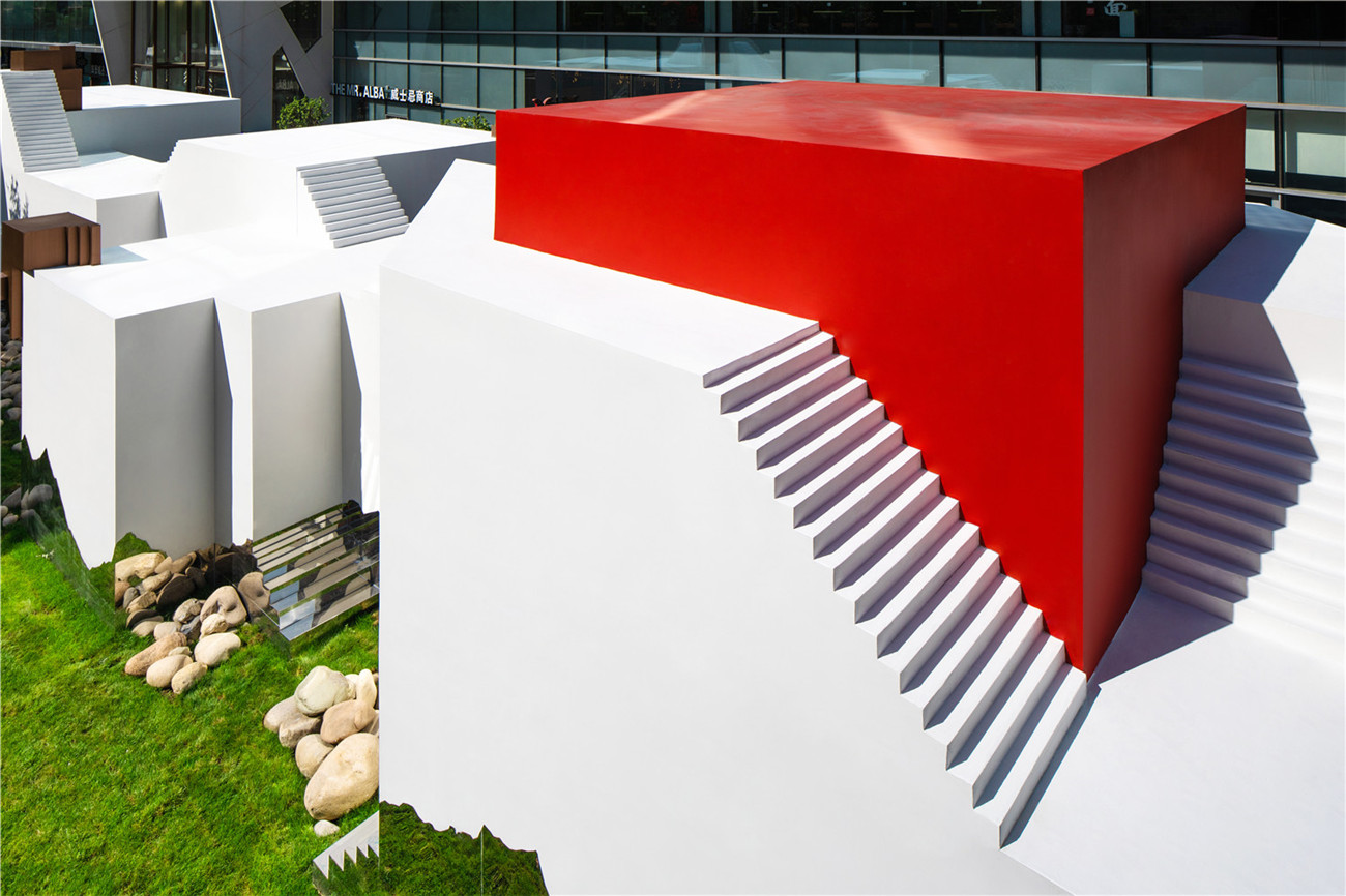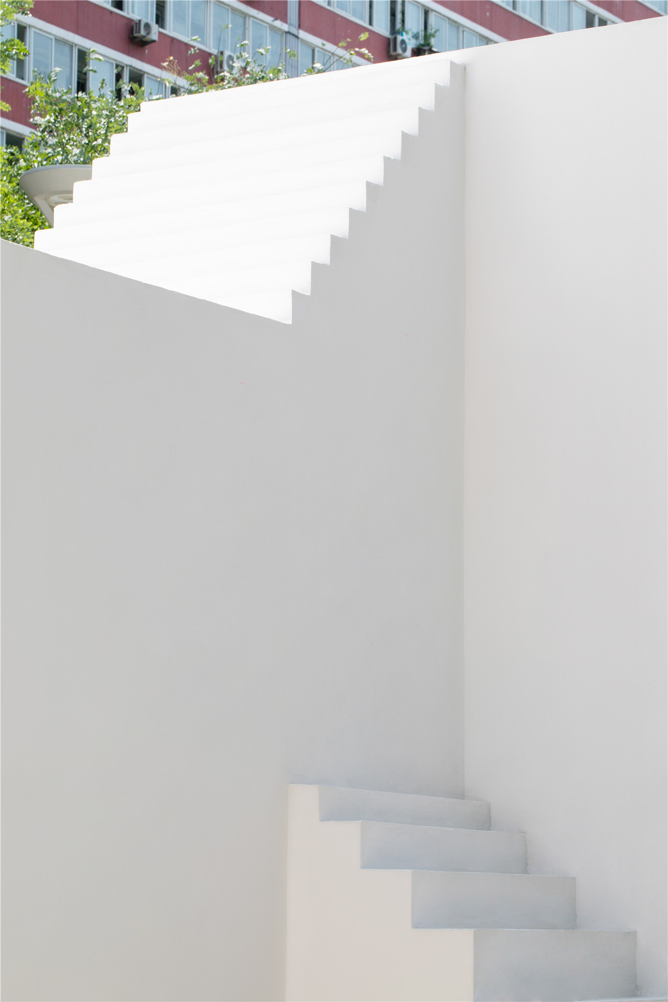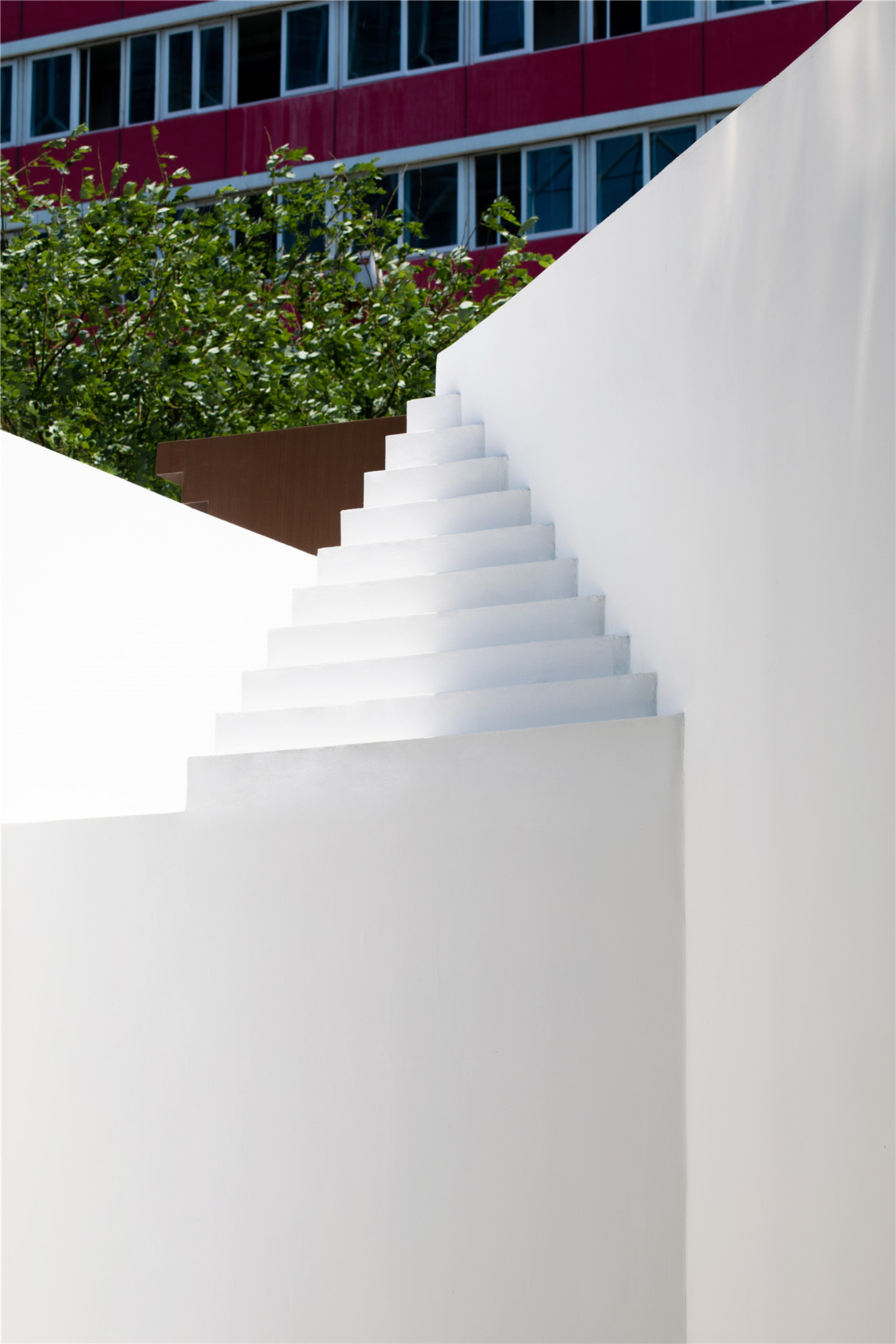 Some steps on the external layout are deliberately adjusted to different heights for people to lean back, sit, or climb. Though they cease to provide a reference point of the building’s scale, they make it more interesting and create a sharp contrast to the serious and dull urban space.