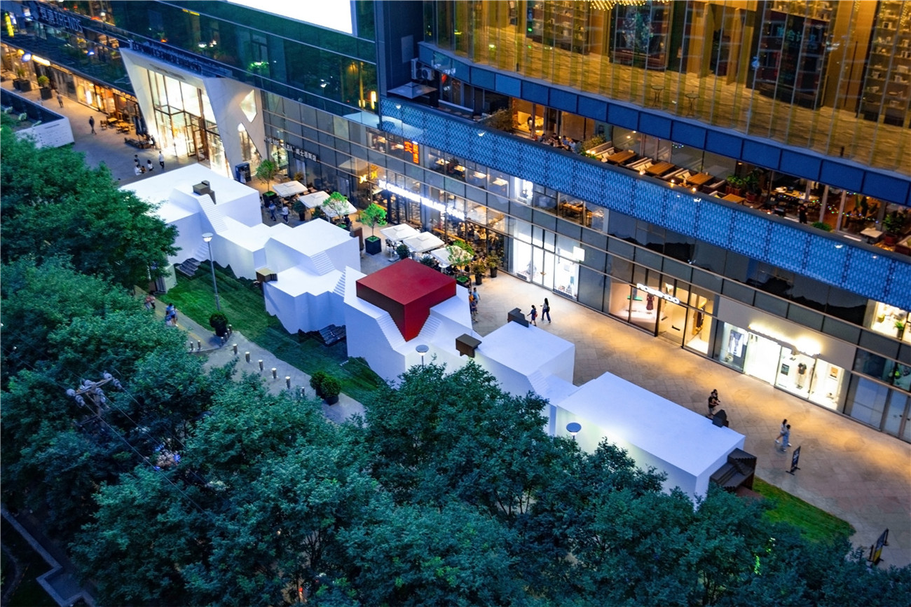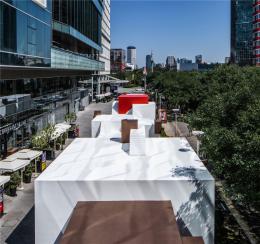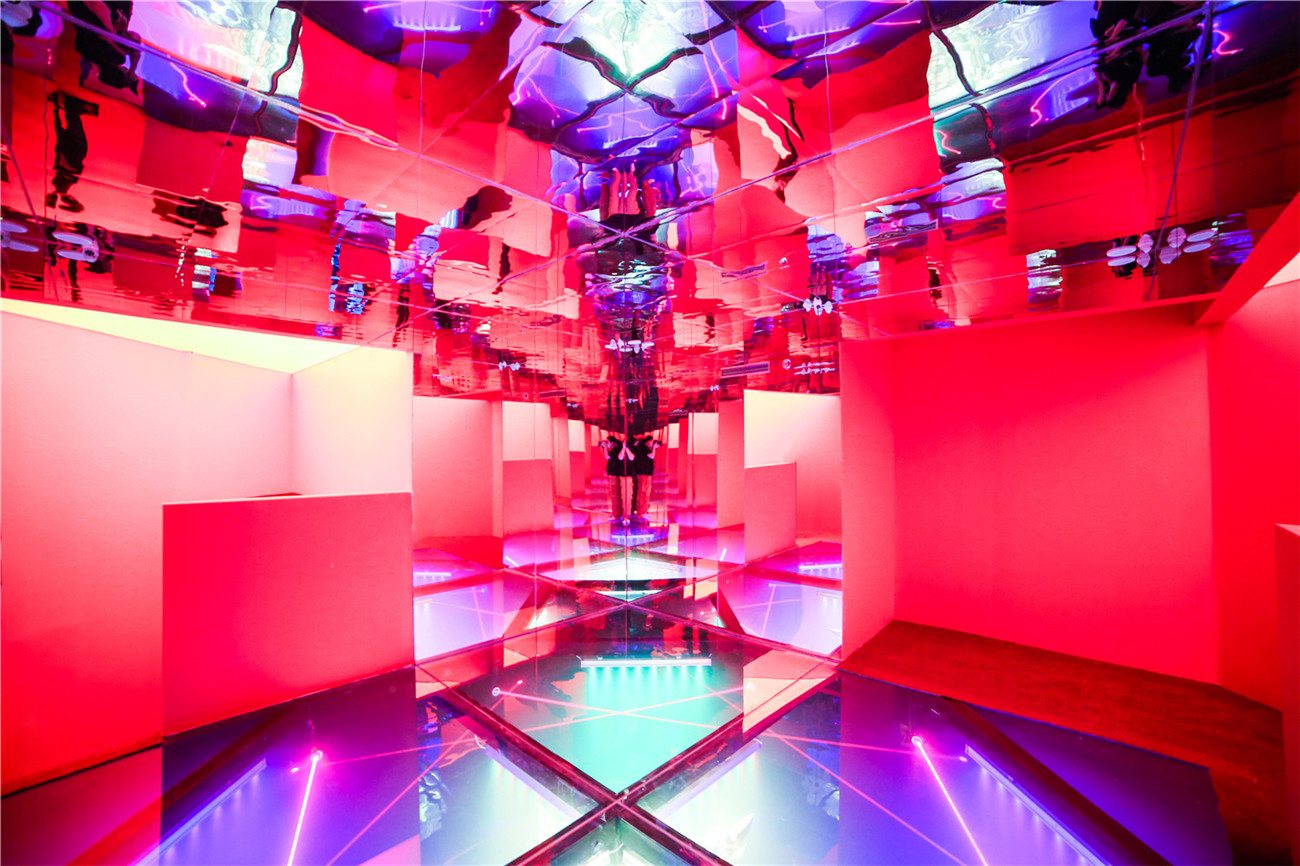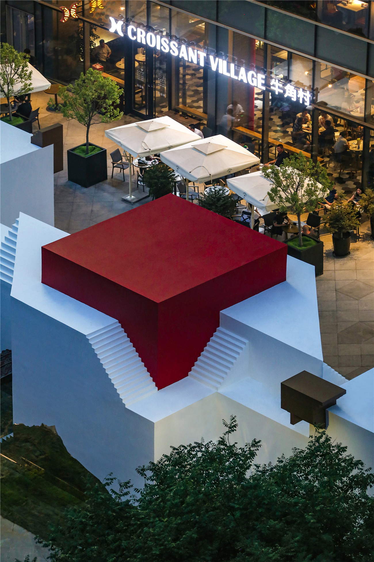 Without windows on the fa?ade, the scale of the building seems to be difficult to judge. When facing it, visitors lack an important yardstick to measure its heights and number of stories. This indicates that the Mandalas Pop-up Digital Art Museum can exist in a form between that of a sculpture and a building, which has also given the architect motivation for further exploration.