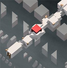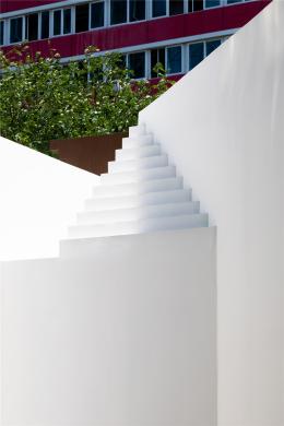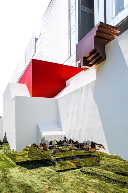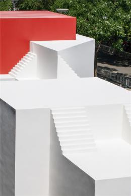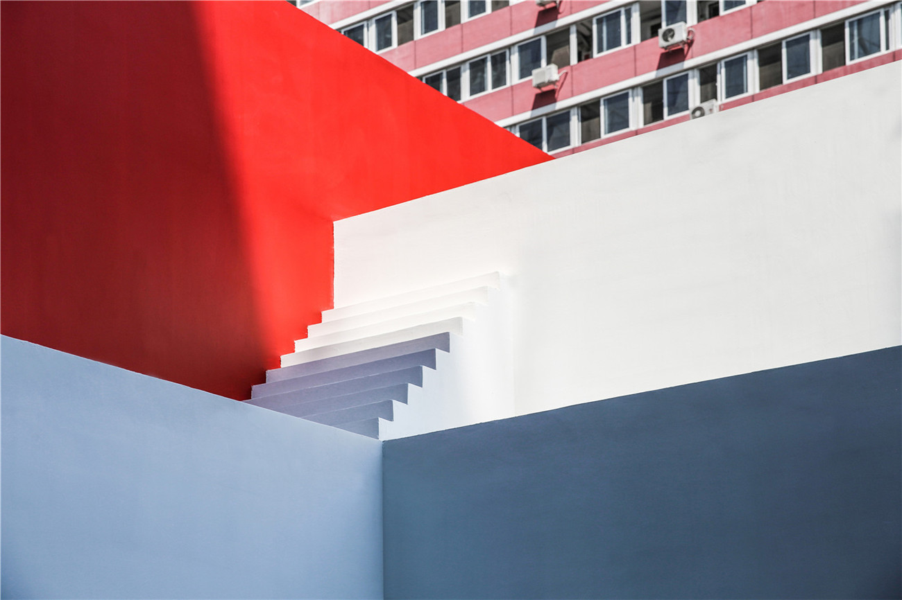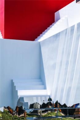 建筑外側的若干踏步,高度被刻意調整,可倚可坐可攀,失去作為衡量建筑尺度的功能,這令它有了更多詼諧的趣味,與嚴肅沉悶的城市空間的形成鮮明對比。