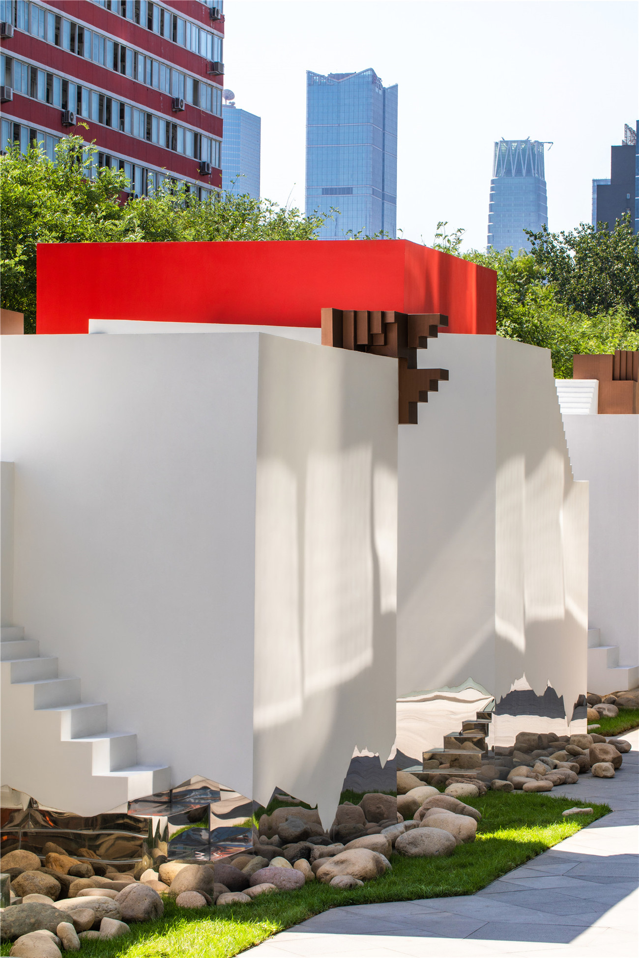 Mandalas Pop-up Digital Art Museum is an inner garden, as well as a utopian city drifting in metropolises.This temporary building, though exhibited in the most bustling urban center of Beijing, provides a completely inward and isolated space.