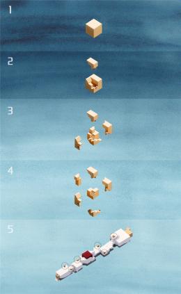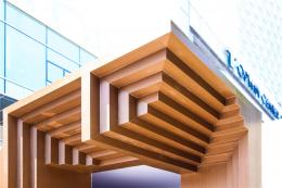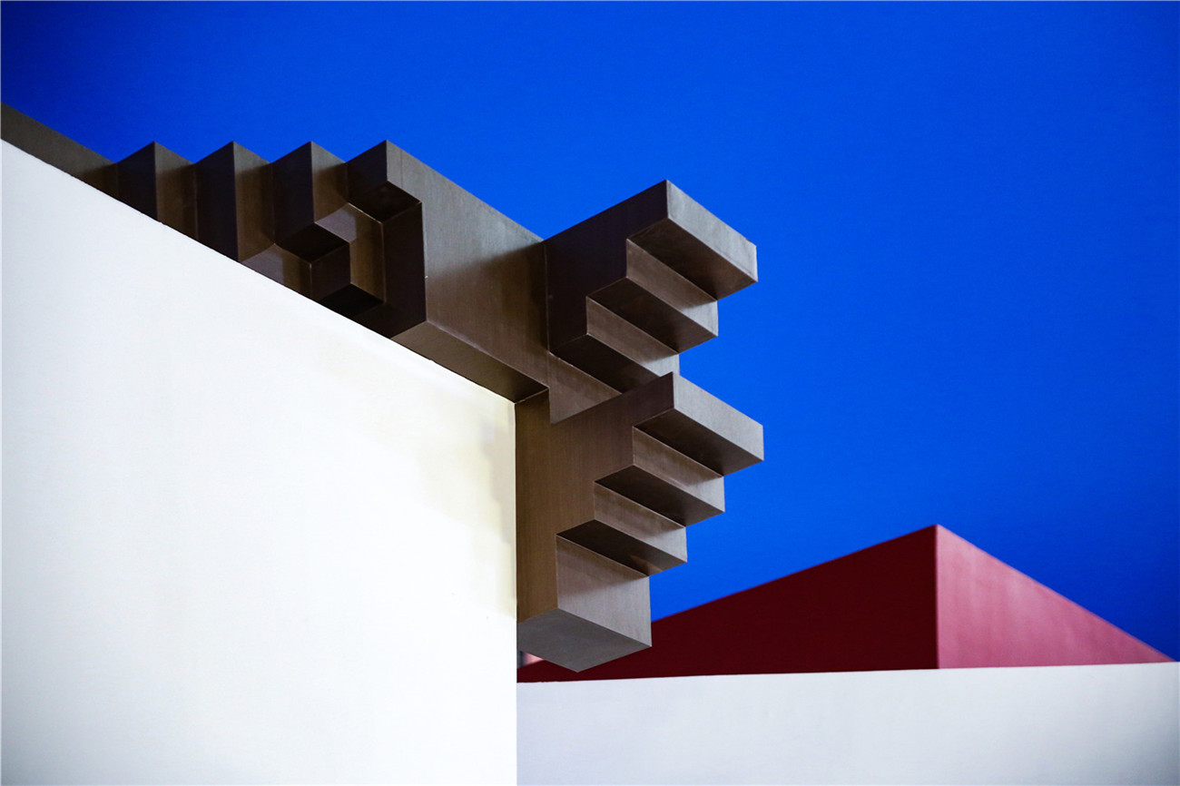 Like a set of blocks that can be reorganized in many ways, the building’s six golden corner blocks can be nested into a complete cube with structures similar to mortise and tenon joints.