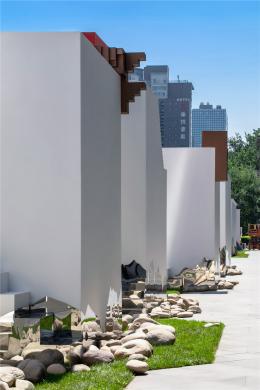 與強調“堅固”的建筑感相對,建筑師試圖在表面材料賦予更多圖像化的特征。曼陀羅之丘立面蜿蜒曲折的線條,正是取自南伽巴瓦峰的天際線。長矛直刺藍天,雪電如火燃燒,這是對南伽巴瓦峰至為精準的形容。它位于喜馬拉雅神秘地結終年深藏云間,卻和我們賴以生存的這個世界骨肉相連,休戚與共。落入繁華都市中心的南伽巴瓦峰,映射喧鬧的人間景象,也為曼陀羅之丘帶來了銀色的神秘光芒,成為質樸中最浪漫的筆觸。