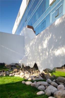 無開窗的立面令建筑的尺度似乎無從捉摸——人們在面對它的時候,缺失了衡量層數(shù)、高度的重要標尺,這提示曼陀羅之丘可以成為介于雕塑與建筑之間的狀態(tài),也引發(fā)了建筑師進一步探索的興趣。