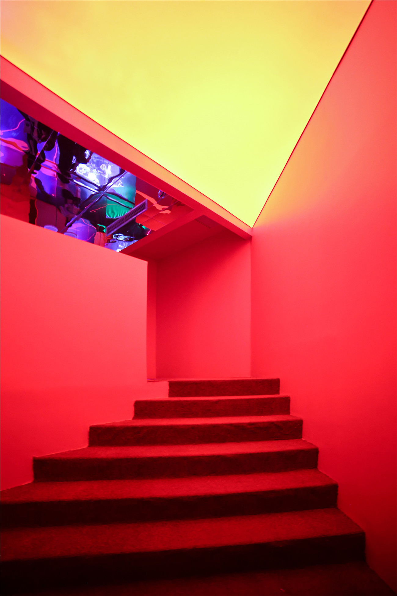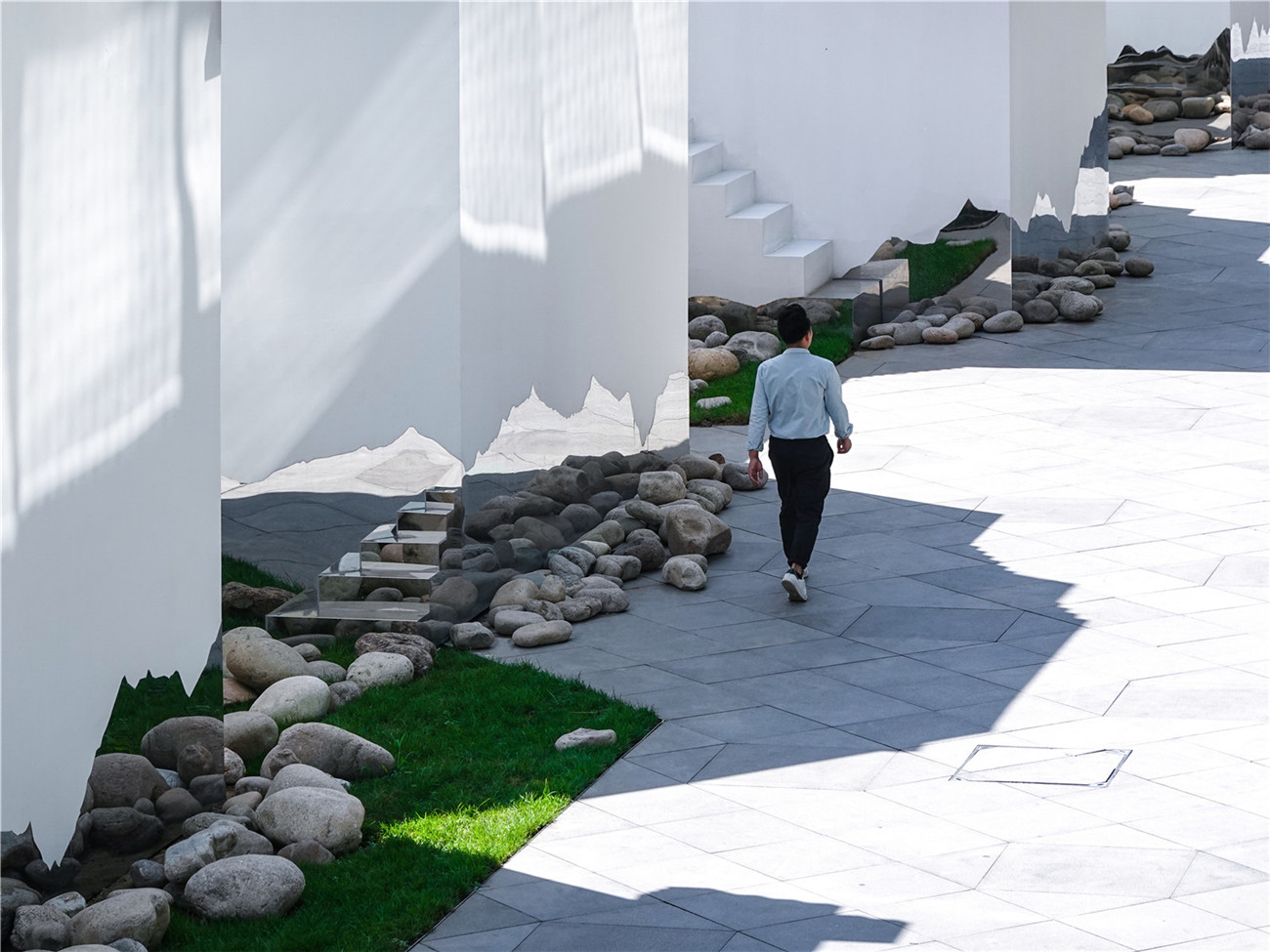 As internal multi-media art exhibitions have strict controls on illumination, the architect completely removed outward windows and designed a double-nested space at the entrance, making it impossible for people to see the building’s inner secrets from outside. In the total darkness of its interior space, visitors rely only on the changing lights and shades.