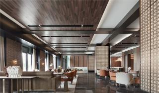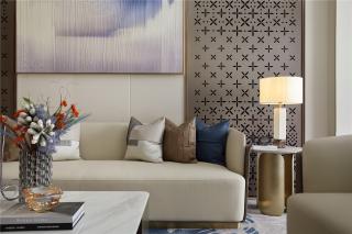 步入休息室,空間的色彩斗趨于平淡。十字花紋金屬背景設(shè)計(jì)更讓空間多了一份理性意味,配合米白色的軟包沙發(fā),人們可以在這個(gè)私密的空間里靜心交談,或一起觀看影片。