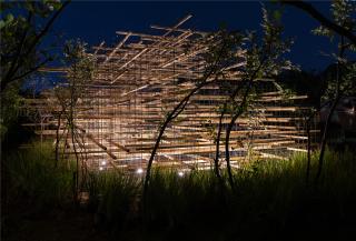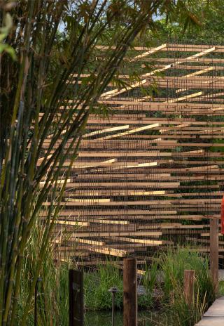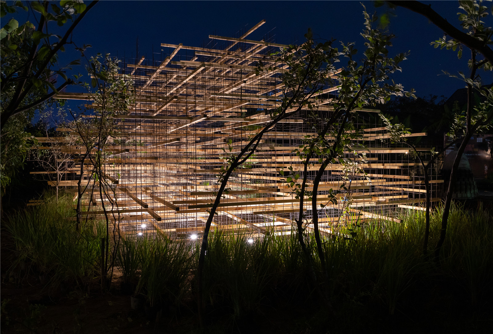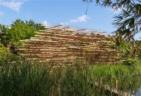 ▼ 景觀亭的有機(jī)結(jié)構(gòu)如同一堆稻草堆疊在花園之中