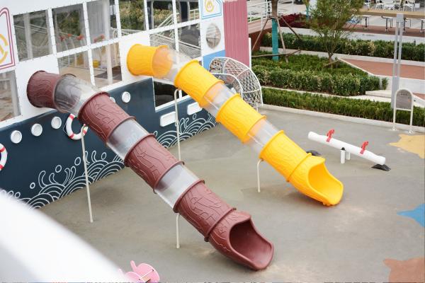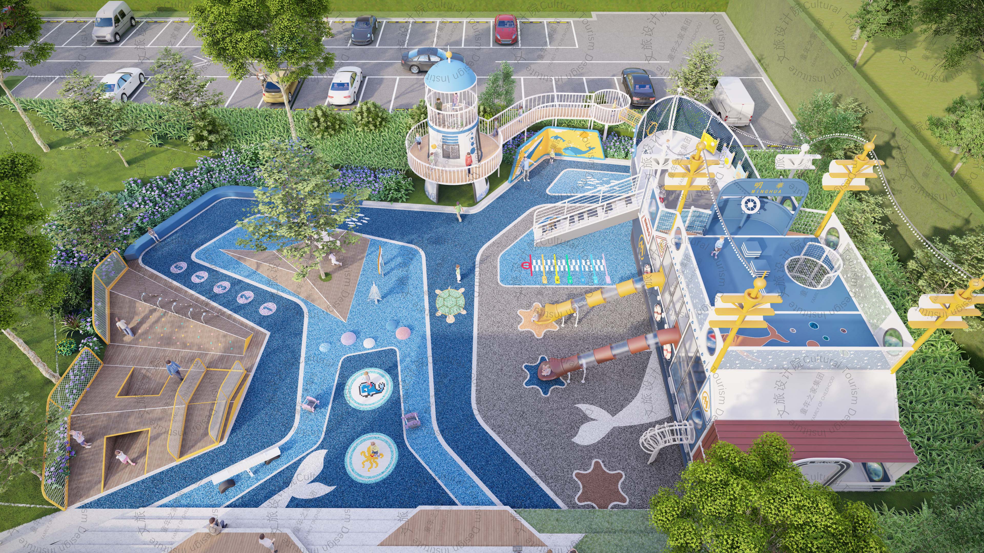 以大型“輪船”游樂裝置作為激發(fā)兒童探索學(xué)習(xí)與想象力的最佳“玩具”,將整個場地想象為海洋,打造趣味與藝術(shù)并存的游樂場景,提升孩子們的體驗及參與感。