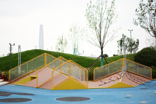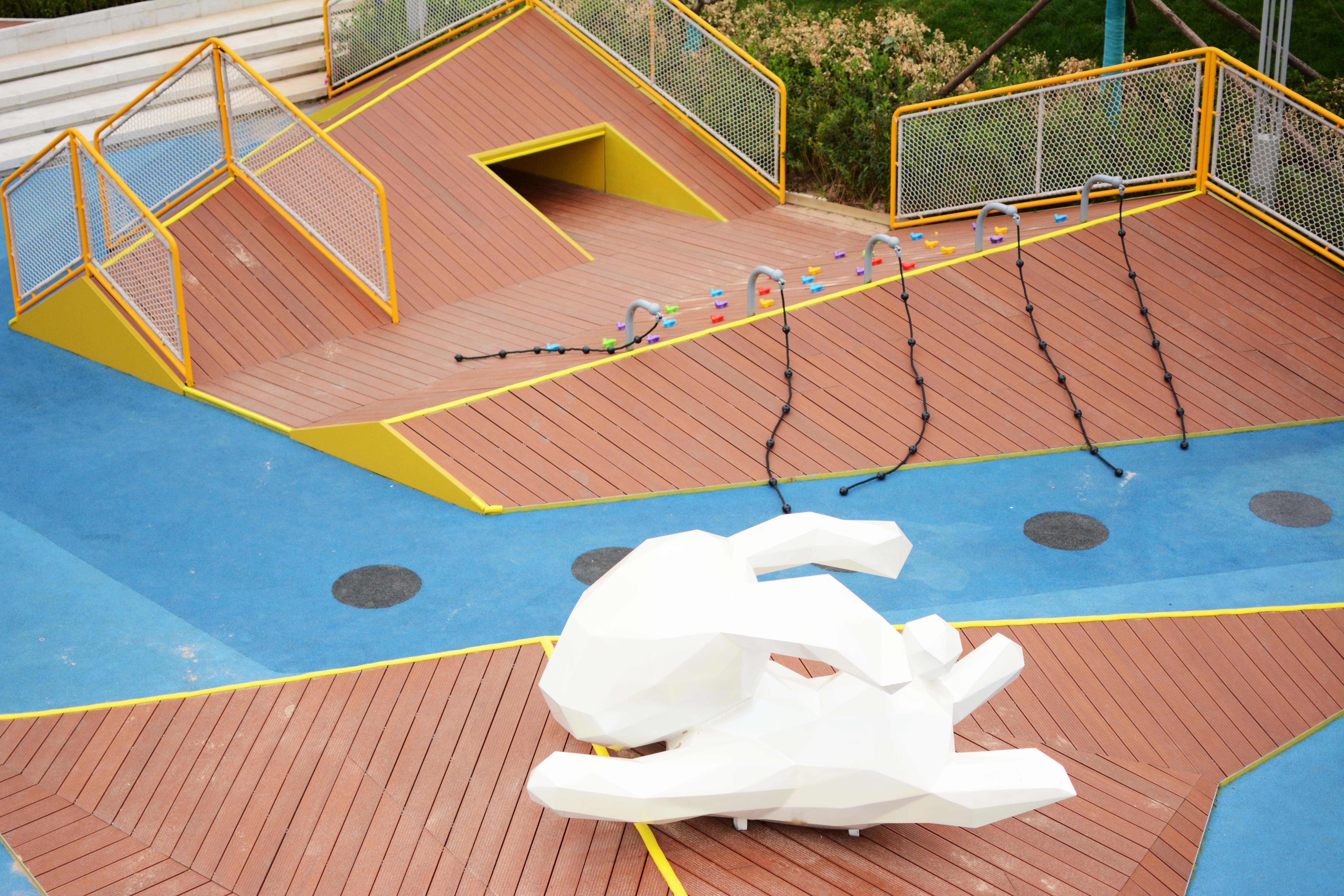 孩子是社區(qū)最具活力的群體,沉浸式的互動體驗讓人與人之間產(chǎn)生更多的聯(lián)系,高差起伏的折線爬坡猶如翻騰的波浪,增加空間的體驗感,攀巖穿梭給予場地更多的互動及趣味性。