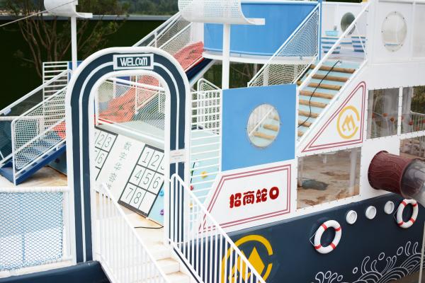 設(shè)計師將游輪中的夾板、船艙、眺望臺與各式游樂設(shè)施結(jié)合,成為孩子們最喜歡的海上探險樂園。他們化身小水手,在游輪之間穿梭攀爬,不同游樂功能激發(fā)孩子們的參與感,在游戲過程中結(jié)識志趣相投的小伙伴。