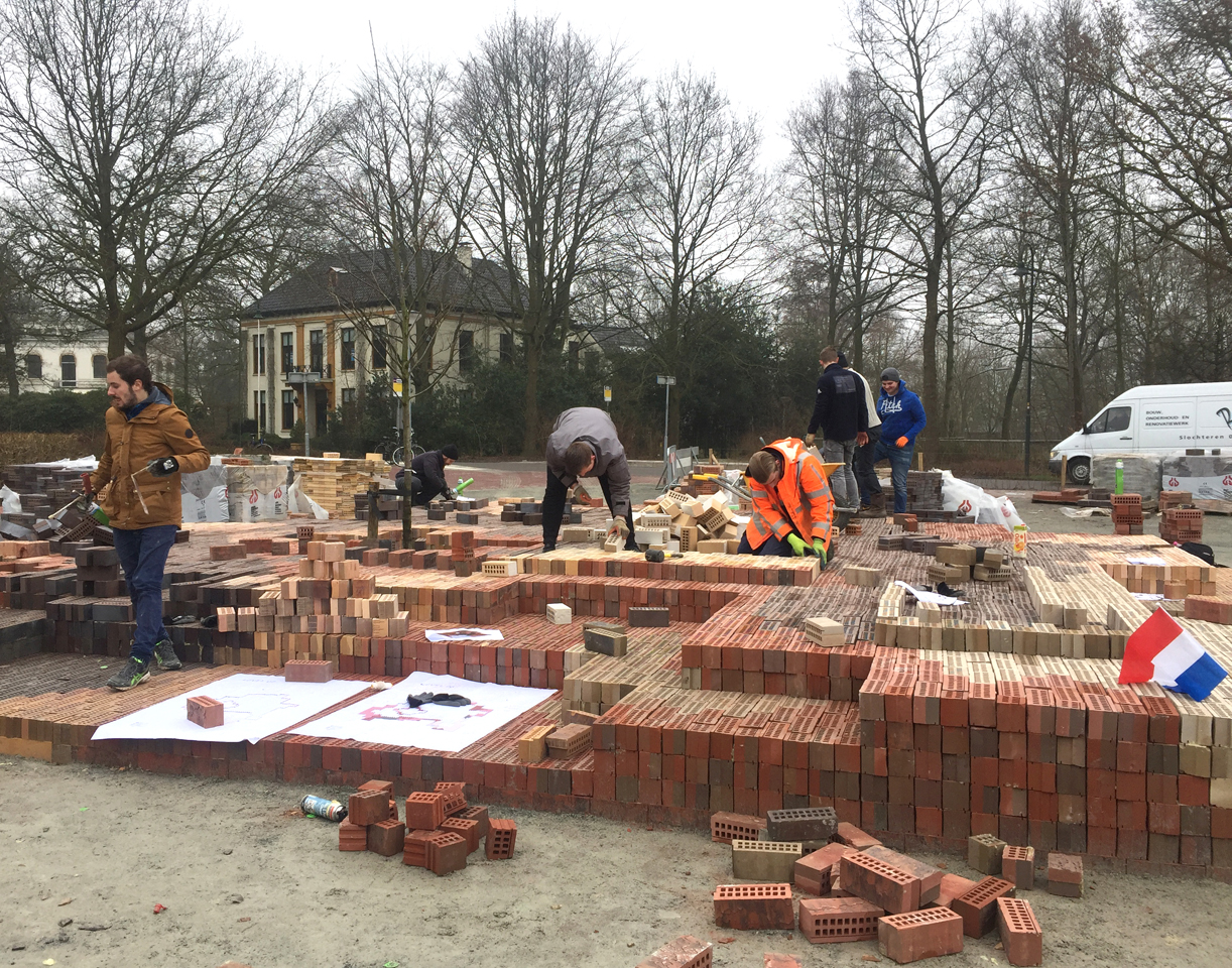 2016年初,MVRDV的建筑師和聯(lián)合創(chuàng)始人Nathalie de Vries在當(dāng)?shù)貙W(xué)生的幫助下,耗費(fèi)5天時(shí)間逐層建造了該裝置,其將在場(chǎng)地內(nèi)保留至少五年,而其維護(hù)工作將全權(quán)交予當(dāng)?shù)氐闹驹刚摺m?xiàng)目存續(xù)期間,裝置中心的那棵小樹(shù)將同它一起成長(zhǎng)。