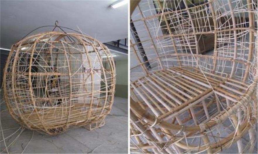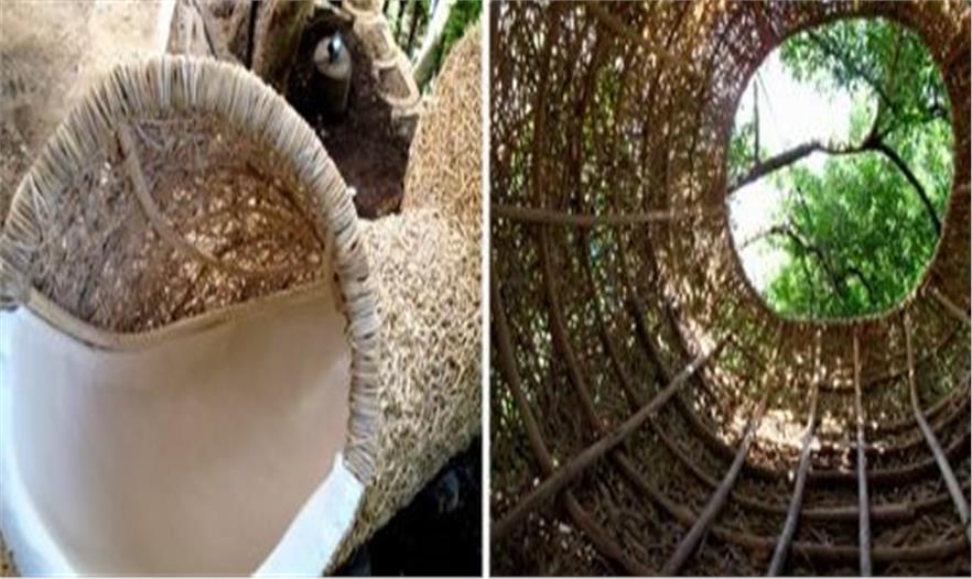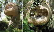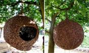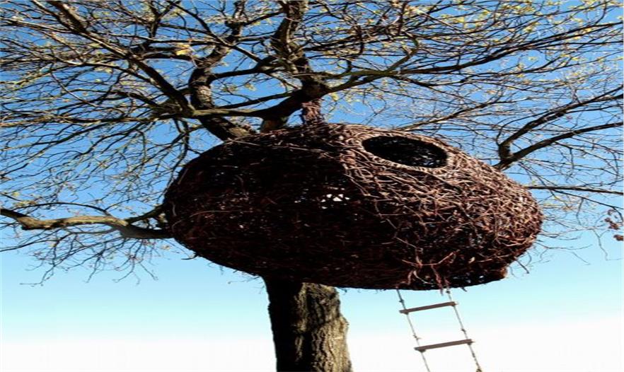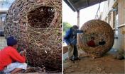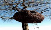 Porky的系列作品“weaver’s nests”沒有起支撐作用的鋼架結構。每個大鳥巢都是用例如樹皮、樹枝等自然材料一點一點編織出來的。最終成形的作品十分堅固,可以容納兩個成人。