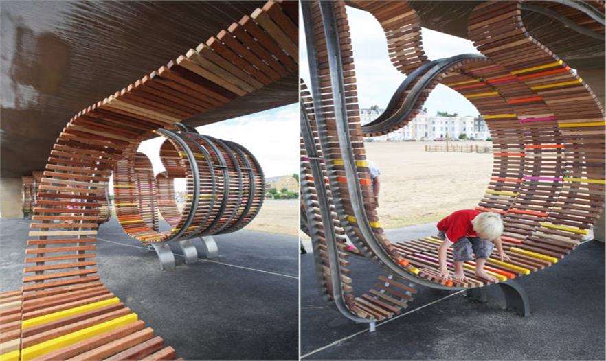 在英國Littlehampton設計了一款324米長的板凳,可以同時讓300人就坐。曲折的波浪形設計,和周圍的景色很好的融合在一起,自然又有特色。
