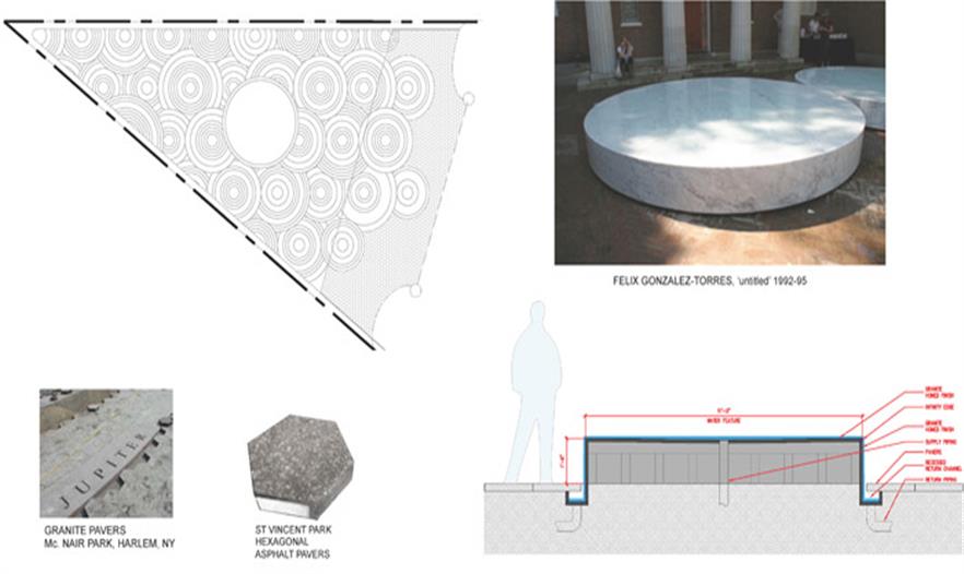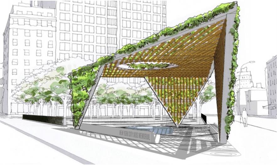 紐約的艾滋病紀(jì)念綠三角位于一小塊三角形街心綠地的銳角頂端。建設(shè)需要在2014年完成。紀(jì)念綠三角從下面幾個(gè)相關(guān)的元素中得到靈感:(1)茂密的樹(shù)林,形成一個(gè)類似樹(shù)冠的頂定義空間區(qū)域,既有視覺(jué)沖擊力,樹(shù)冠又如房屋般體現(xiàn)一種庇護(hù)性;(2)一個(gè)靜水流泉,可以讓人反思冥想;(3)一個(gè)擁有故事表達(dá)的鋪裝,引導(dǎo)人們?cè)诖私涣骱土私狻?/p>