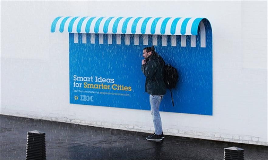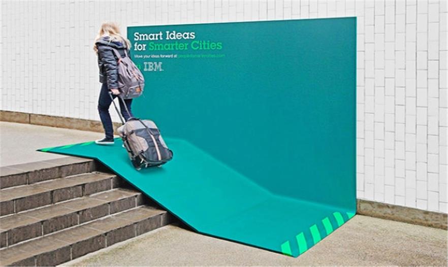 IBM聯(lián)合Ogilvy & Mather用低調(diào)親民大眾化的方式,將戶外廣告變身為便民設(shè)施,詮釋智慧城市(Smarter Cities)理念。精心設(shè)計(jì)的廣告變身累了可以坐下來休息一下的“長板凳”,下雨時(shí)可以避雨的小雨棚,還有人性化的的無障礙坡道。