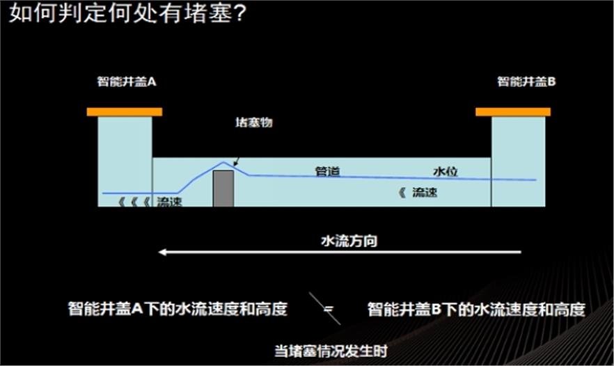 美國某城市采用了智能井蓋結(jié)合IBM的智慧城市平臺(tái),提前應(yīng)對(duì)強(qiáng)降雨天氣對(duì)市民的影響。該城市部署了44個(gè)智能井蓋,每5分鐘這些井蓋就往運(yùn)營平臺(tái)發(fā)送一次數(shù)據(jù),其中包括水位、水流速和水溫。同時(shí),該系統(tǒng)還整合了氣象信息,城市管網(wǎng)拓?fù)湫畔?,交通信息等。下圖說明了分析技術(shù)如何通過智能井蓋的信息分析管道的擁堵。