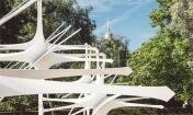 這個(gè)亭子是一個(gè)自我支撐的結(jié)構(gòu),大概4米高,占地62平方米,主要是由不銹鋼復(fù)合材料制成,并由出售的鋼芯和有碳鋼頭的鋼鐵結(jié)構(gòu)的地錨支撐。