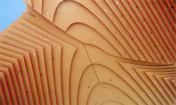 這些中密度纖維板有洞,能插入到垂直結(jié)構(gòu)中,而螺絲能旋轉(zhuǎn)進(jìn)入彼此構(gòu)成一個(gè)單獨(dú)的結(jié)構(gòu):具有穩(wěn)定性和支撐性。這些螺絲和木板合為一體,將重量一一傳給下去,所以這個(gè)展館成為港口地面上一個(gè)獨(dú)立的建筑。此外,該展館的特殊結(jié)構(gòu)遵循風(fēng)道建造,不會(huì)產(chǎn)生與其對(duì)立的垂直面。
