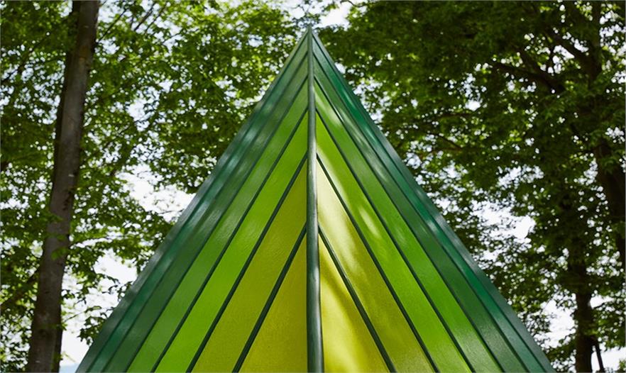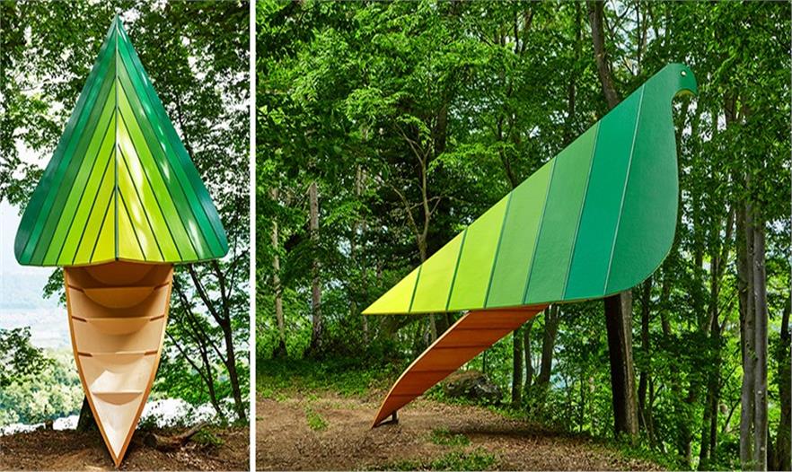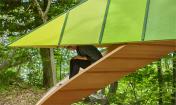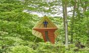 今年初,設(shè)計師noma bar 受到安藤百?;饡奈?,在日本小諸市(komoro)安藤百福中心的樹林中建造一個樹屋。這個項目提供了noma bar一個千載難逢的機會將他擅長的極簡主義圖形藝術(shù)變?yōu)檎鎸嵢S空間,他從鳥和葉子的形式中得到靈感,設(shè)計了一個獨特的樹屋。
