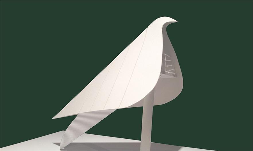 “當(dāng)我接過這個項目的時候,我去了基地——安藤百福中心,小諸市,長野縣(komoro, nagano)——大約距東京3小時車程。我環(huán)望四周,我覺得,我的樹屋必須在這些樹的頂端,鳥瞰赤城山(akagi mountain),這樣才可以看到最美的風(fēng)景?;氐絺惗刂?,某天當(dāng)我在highgate wood工作的時候,迸發(fā)了鳥眼觀世界的靈感。我發(fā)現(xiàn)將兩片葉子放在木地板上,一片搭接著另外一片時看起來像一只鳥,而這就是設(shè)計的開始。從兩片葉子的搭接開始,變成9米長的樹屋?!薄猲oma bar