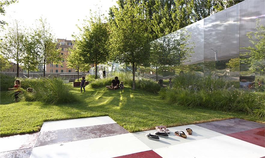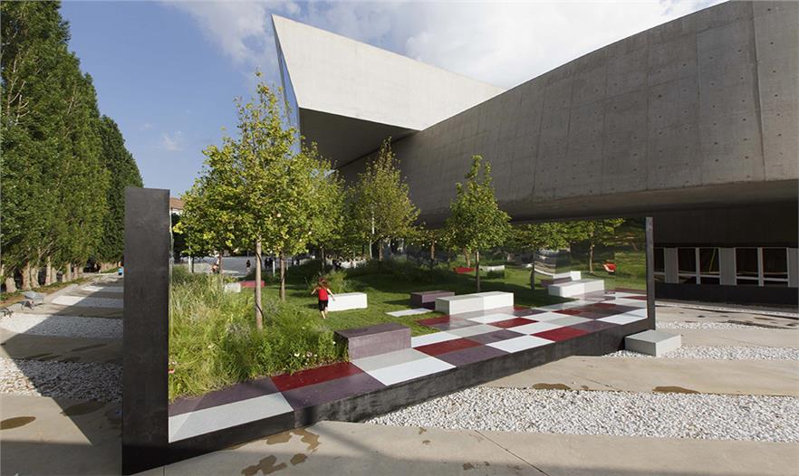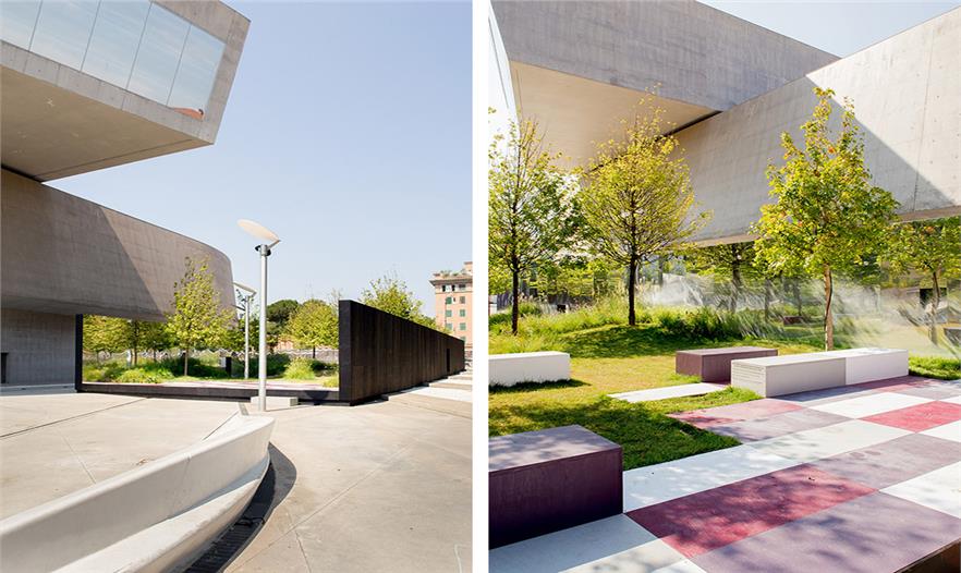 2015年的春夏世界,在zaha hadid設(shè)計(jì)的羅馬MAXXI博物館前,出現(xiàn)了一片自然綠色的“大地”。這片“大地”裝置藝術(shù)作品由CORTE創(chuàng)作。