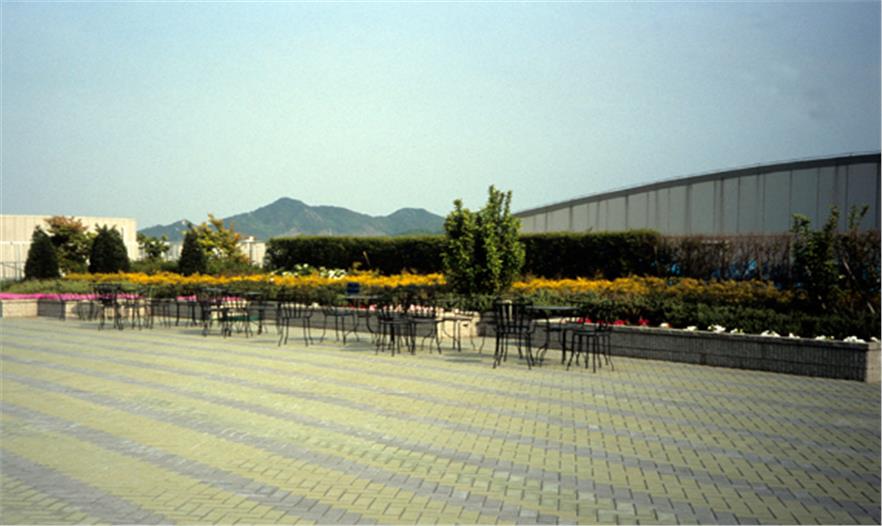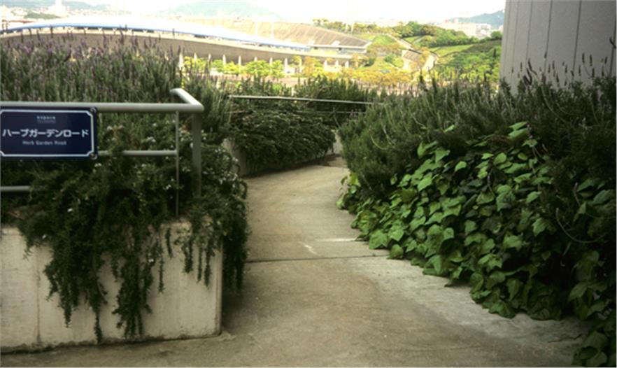 當(dāng)該事務(wù)所被邀請(qǐng)為大阪新的公司總部設(shè)計(jì)室外空間和屋頂陽臺(tái)時(shí),他們決定以該城市外的自然景觀為靈感。在一條主要的高速公路上可以看到這個(gè)立面,懸浮的花盆為城市增添了綠意。第4層的陽臺(tái)之前是芬理希夢(mèng)公司用來展示產(chǎn)品的地方,現(xiàn)在以其曲折的結(jié)構(gòu)和波浪狀的路面展現(xiàn)出海的形態(tài)。該事務(wù)所在日本園藝師的幫助下為第5層的陽臺(tái)挑選了植物,這個(gè)2880平方米(3.1萬平方英尺)的空間用于員工聚餐和公司聚會(huì)。這些植物都是本州島中部的本土植物,在遠(yuǎn)處的山上隨處可見。