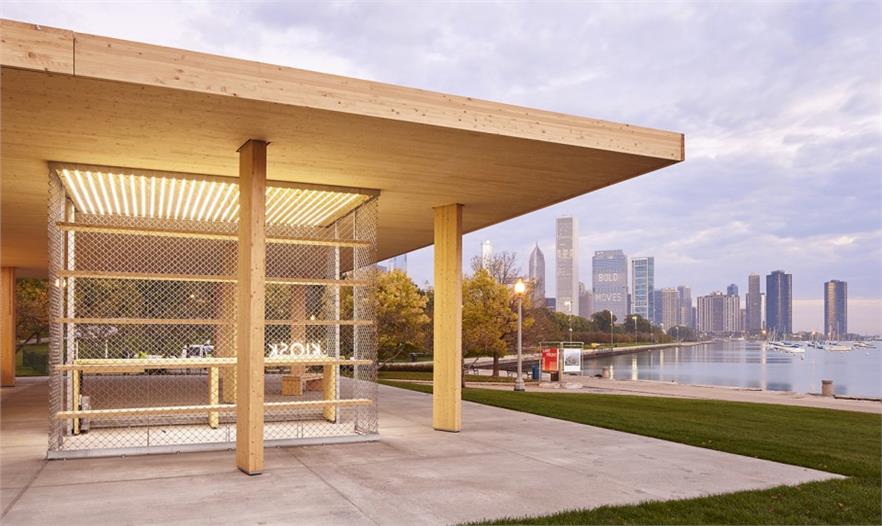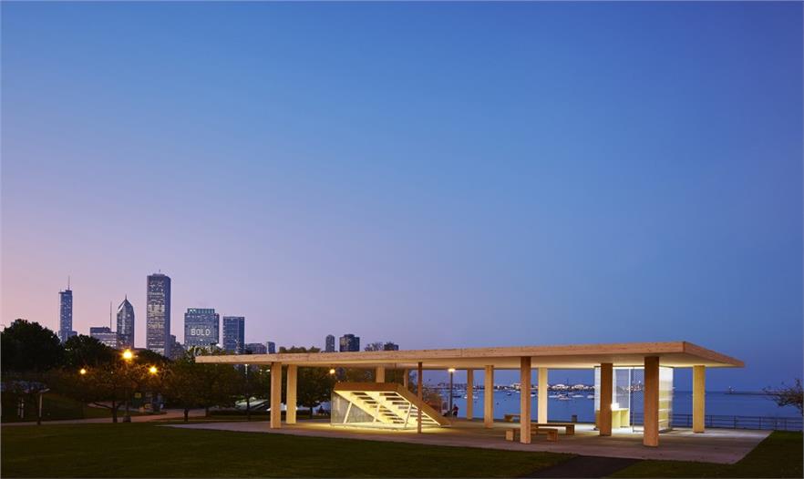 “芝加哥水平線”是為首屆芝加哥建筑雙年展舉辦的芝加哥湖畔報亭設(shè)計競賽中榮獲第一名的作品,位于芝加哥千禧公園內(nèi),于2015年10月1日對公眾開放。