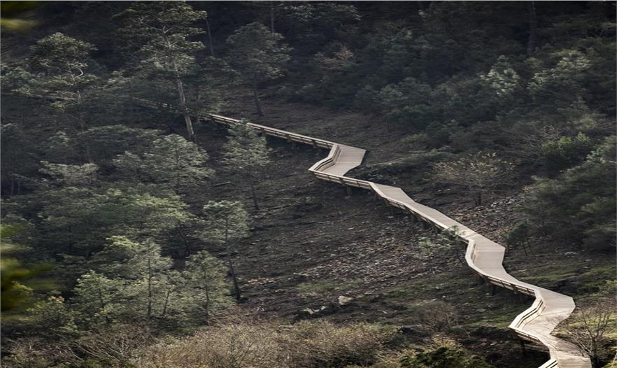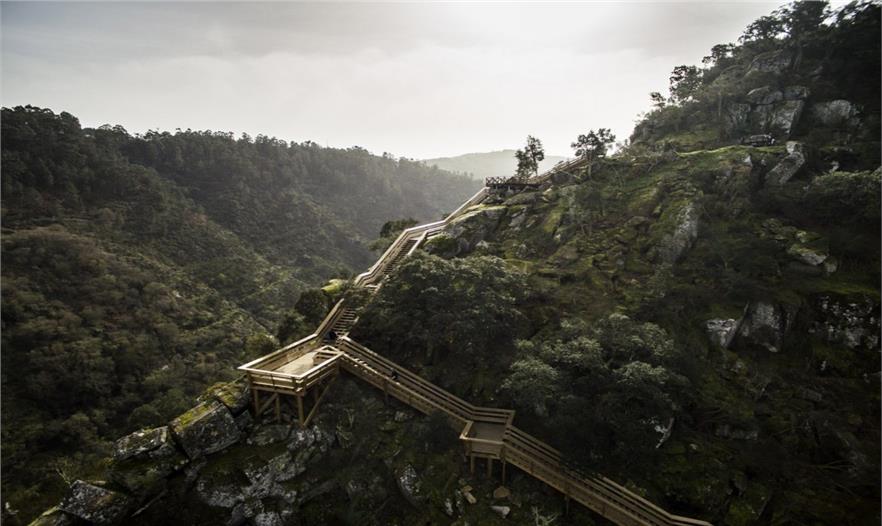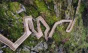 葡萄牙阿羅卡的派瓦河邊,有一條讓人驚異的8公里人行道。蜿蜒轉(zhuǎn)折起伏前進的道路串聯(lián)起各種各樣如詩如畫的自然美景,讓人沉醉在河流,瀑布,原生態(tài)的動植物景觀中。8公里的歷程不單是自然中漫步那么簡單,整個人行道的設(shè)計不僅盡可能的對景觀環(huán)境減少干擾,還為人們提供了一個戲劇性的觀景體驗。木橋緊貼河道延伸,跨越河流與懸崖,在山體上蜿蜒前進,到達山頂。整個路線沿著自然地形在恰當?shù)牡胤皆O(shè)置休息站和觀景點,為人們提供各種美景與全景觀賞點。該項目由阿羅卡市政府和Trimetrica工程公司主導。攝影由Nelson Garrido。