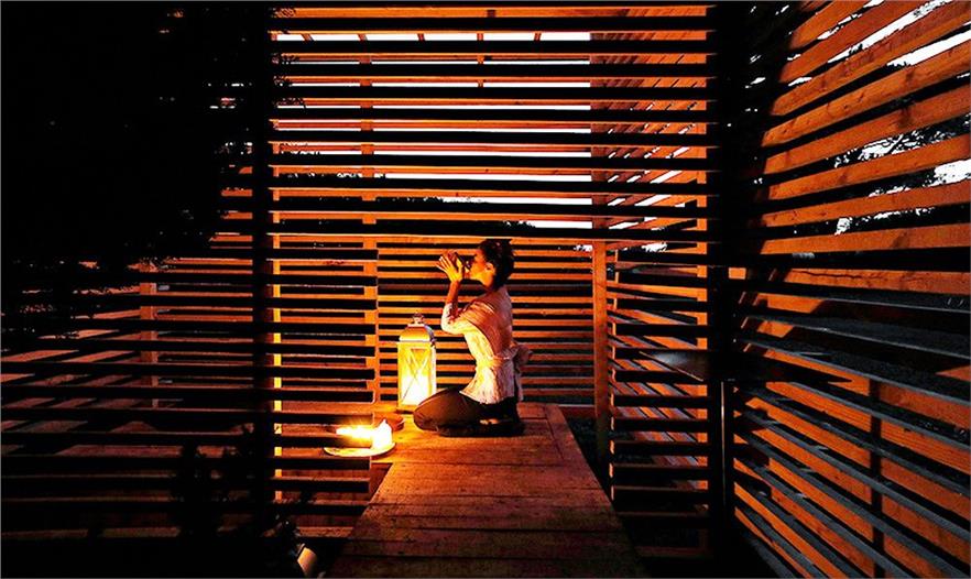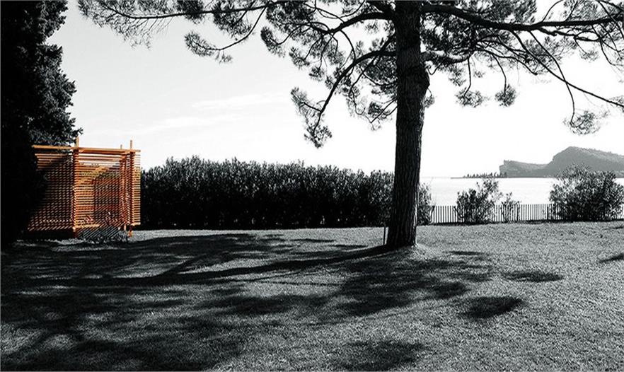 在意大利圣費德爾貝納科市加爾達湖沿岸建成了一座小“茶亭”,“茶亭”作為一處靜修的溫馨空間,幫助訪客在停留期間平復(fù)他們的思緒和身體。與人們可能想到的相反,這座亭子與湖景根本沒有任何視線上的聯(lián)系,這其實是設(shè)計事務(wù)所為了幫助訪客內(nèi)觀自我的有意之舉。將所有的視覺干擾移除,訪客會更加容易專注于其他感官。建筑入口由一道六米的木制斜坡引導(dǎo),會穿過一對雌雄楊樹之間的空隙?!安柰ぁ北旧硎怯赡静慕ǔ?,其色澤將隨著時間的推移而變化。