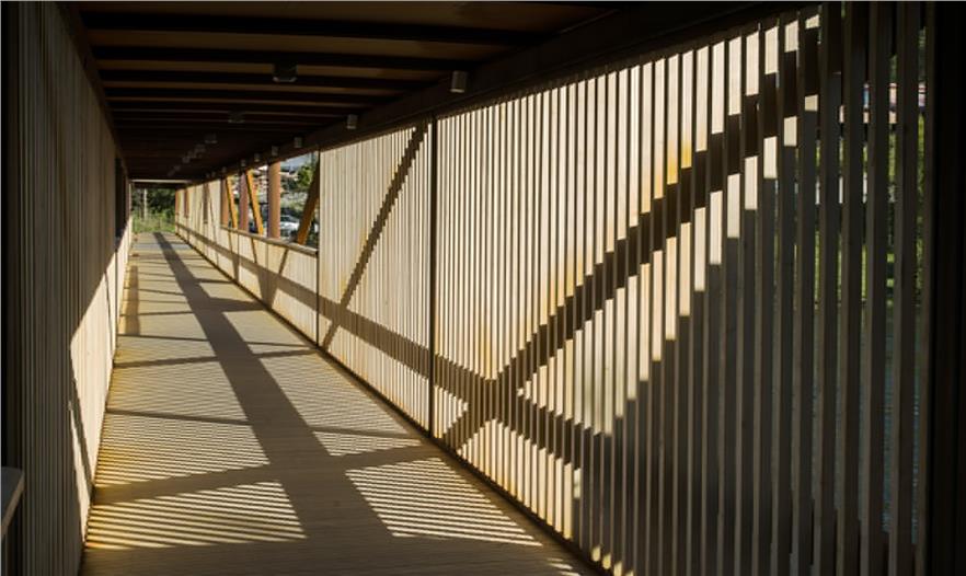 按照慣例,橋梁的維護(hù)對(duì)業(yè)主是一個(gè)重要的考慮因素。將考登鋼作為結(jié)構(gòu)材料,改性木材作為飾面,這種做法完全打動(dòng)了我們的業(yè)主。這種材料搭配整合了強(qiáng)度、耐久性與數(shù)年零維護(hù)的優(yōu)點(diǎn)。業(yè)主同時(shí)也十分喜愛為橋梁蓋上屋頂這一想法,因其避免了掃雪機(jī)的使用,而掃雪機(jī)對(duì)步行橋來說時(shí)常是一個(gè)令人頭痛的難題。