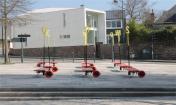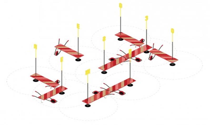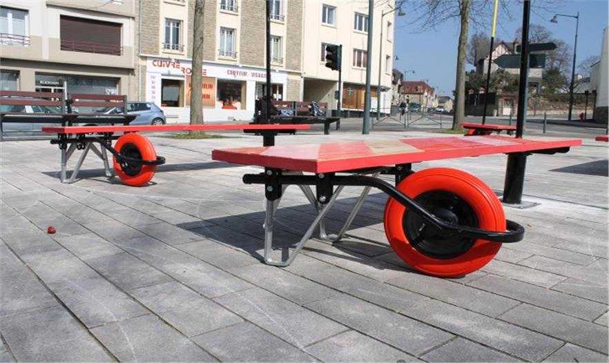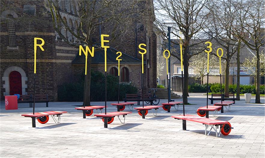 但一組靈活的旋轉(zhuǎn)長椅改變了所有的無趣,讓這片公共空間變得靈活,充滿生氣。旋轉(zhuǎn)的凳面,可以與朋友圍成一圈面對面,也可以與周圍的人隔離。長椅的鮮艷紅色與黃色也非常跳躍,引人注意。
