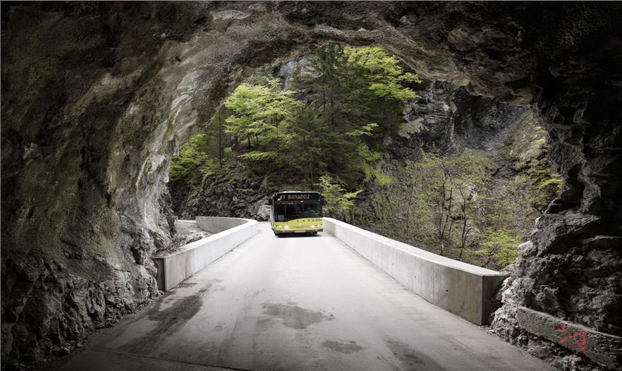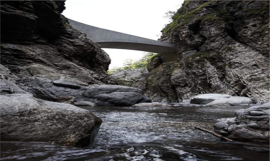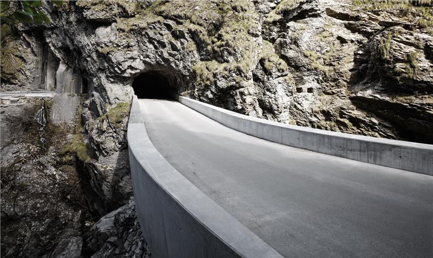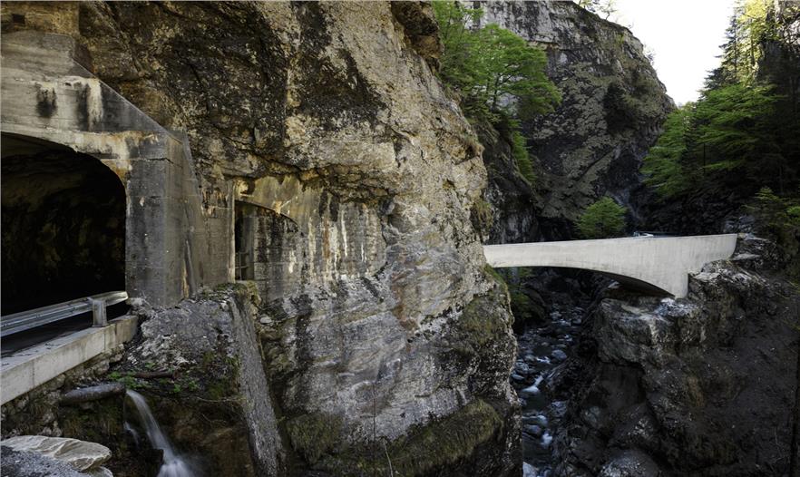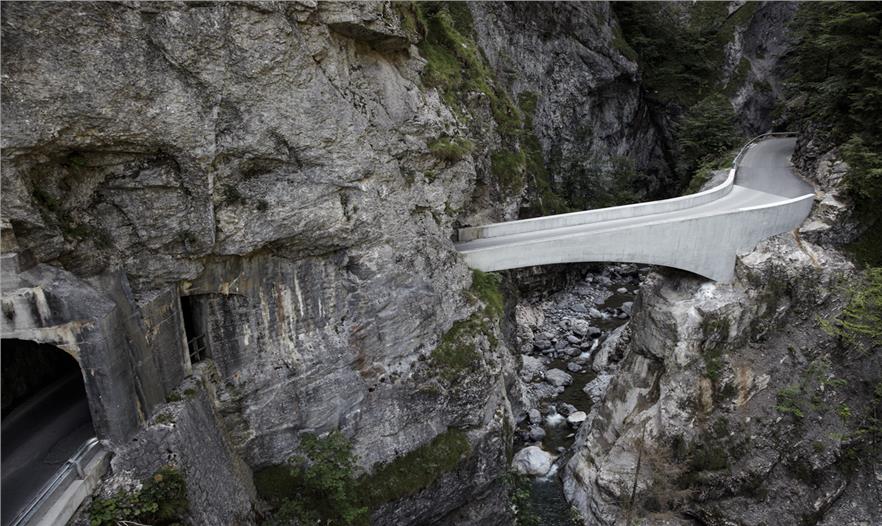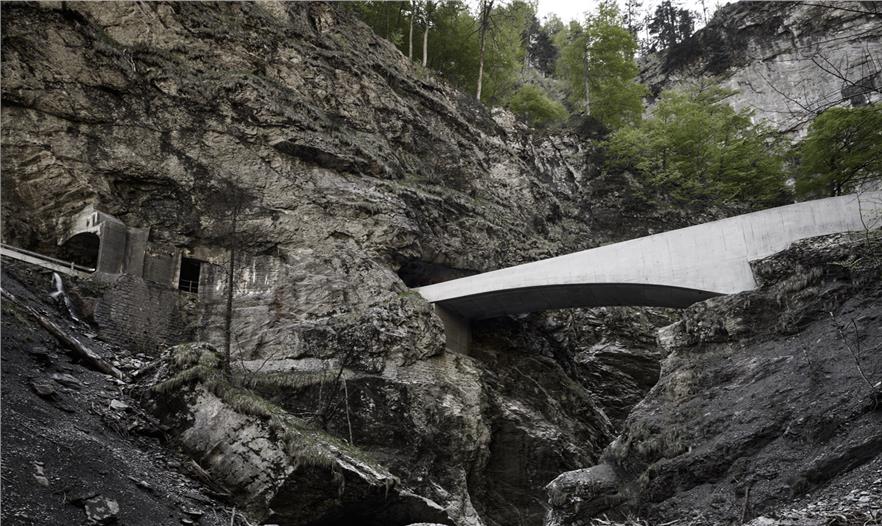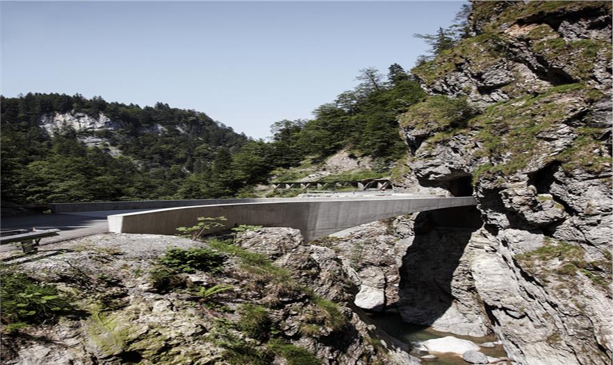 這是在通往多恩比恩的Ebnit 行政區(qū),沿壯觀的阿爾卑斯山的一條公路上第二座拱橋,這三個(gè)基礎(chǔ)設(shè)施項(xiàng)目的總體規(guī)劃正在一步步的接近完成。這座剛建成的Schaufelschlucht大橋已經(jīng)與周圍的大自然環(huán)境融為了一體,就像自然景觀一樣令人印象深刻。