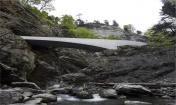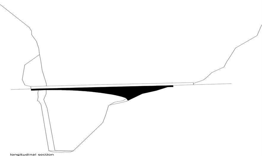 這兩座拱橋都遵循了同樣的原則:建立一個(gè)內(nèi)部和外部都可見的混凝土結(jié)構(gòu)。橋梁扭曲的形狀在山谷邊逐漸變細(xì)之后我們可以對這個(gè)拱形結(jié)構(gòu)有了更加清晰的認(rèn)識(shí),而在Ebnit一側(cè)則需要承受水的動(dòng)力,這里峽谷的巖石上經(jīng)過數(shù)千年河水的沖刷留下了深深的印記。
