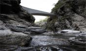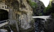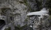 一條黑暗,狹窄的隧道是自然形成的,道路兩邊的巖壁險(xiǎn)峻陡峭,是一片天然的背景畫面,經(jīng)過的人們都會(huì)感嘆這大自然的鬼斧神工。這座橋的護(hù)欄采用了混凝土結(jié)構(gòu),讓駕駛者在穿越這片咆哮奔騰的河流時(shí)具有安全感,它的結(jié)構(gòu)均勻并且堅(jiān)固,這座橋梁不論在形式上還是在可持續(xù)性發(fā)展方面都是一座堅(jiān)不可破的永恒建筑。