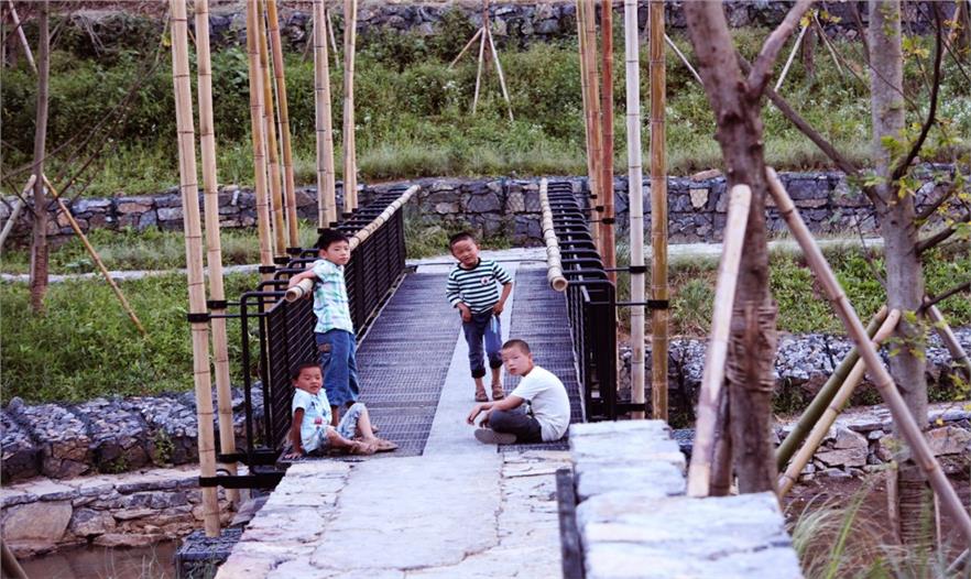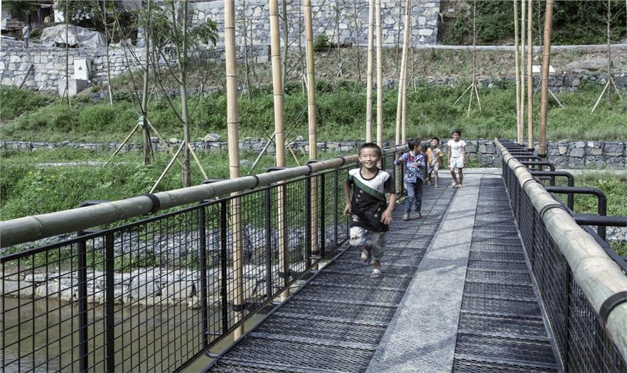 完工后的步行橋成為了小山村的地標(biāo)。樸素而和諧。筑橋,本是普普通通的營(yíng)造,卻在鄉(xiāng)間重新煥發(fā)了新的活力。孩子們興奮好奇的打量腳下的鋼板,在橋上奔跑踩出響聲,年輕的情侶倚著欄桿互訴衷腸,古稀老人也在蹣跚經(jīng)過(guò)時(shí)感嘆一番如今的便捷安穩(wěn)。清晨和傍晚,村民們自發(fā)來(lái)到這里賞景閑聊。它不僅解決了交通問(wèn)題,也成了新的公共空間和交流場(chǎng)所。