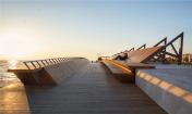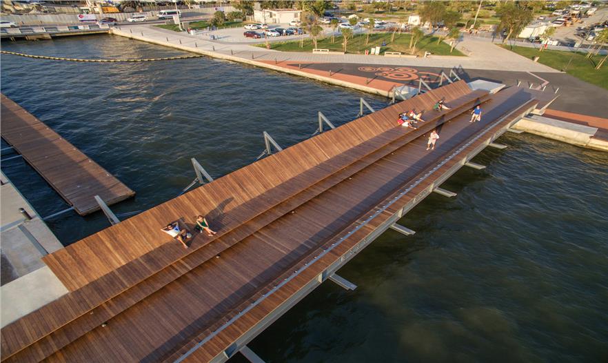 “Kar??k?y?”的概念方向與總體規(guī)劃一致,Bostanl?人行橋目的是連接Bostanl?溪兩岸,完善現(xiàn)在缺失的海岸散步系統(tǒng)。縱剖面是纖細(xì)的弓形和特殊設(shè)計(jì)的幾何形主梁,橋下方為小型船只和浮舟預(yù)留了通道。這個(gè)新型的城市結(jié)構(gòu)有著非對(duì)稱的橫剖面,這取決于它特殊的地理位置——一側(cè)面向海灣的景觀,一側(cè)面向城市。這個(gè)特殊的剖面是由幾個(gè)層疊的木表面安裝在鋼框架上組合而成,使游客在觀賞海灣景觀時(shí)可以坐臥。