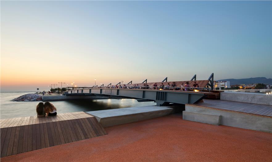 Bostanl? 人行橋和 Bostanl? 陽(yáng)光房由Evren Ba?bu?建筑師事務(wù)所設(shè)計(jì),它們作為 為“?zmirSea”海岸線再生項(xiàng)目創(chuàng)造的“Kar??k?y?”計(jì)劃的一部分。由于海岸線的特殊幾何形狀,這里是Bostanl?溪流入海灣的節(jié)點(diǎn),也是城市記憶的交織點(diǎn)。這兩個(gè)建筑的選址以臨近和互相參考為原則,一起創(chuàng)造了一個(gè)新型綜合海岸線景觀。這里已經(jīng)成為了 Kar??yaka最受大眾喜愛的景點(diǎn)之一,自2016年7月開放以來(lái)吸引了來(lái)自四面八方的城市中的居民。