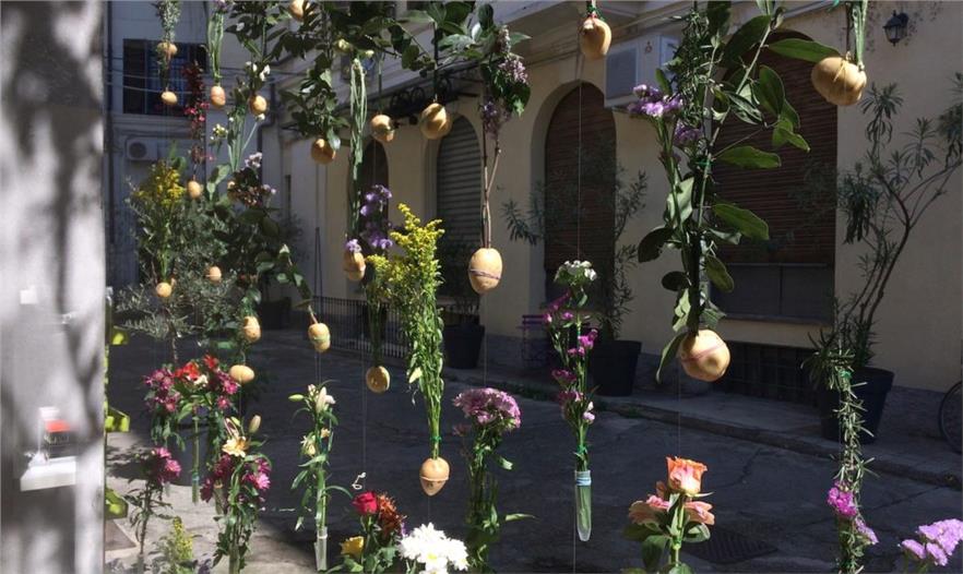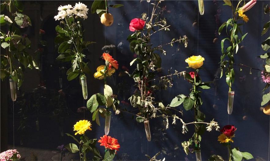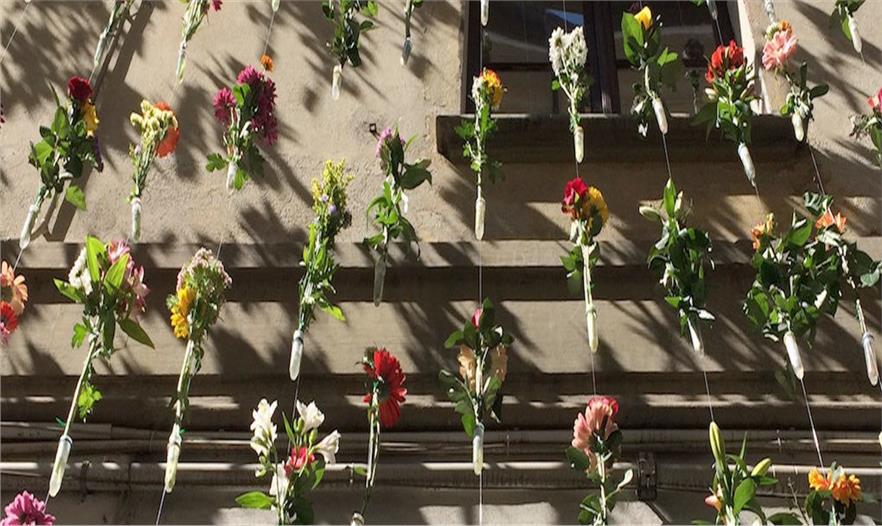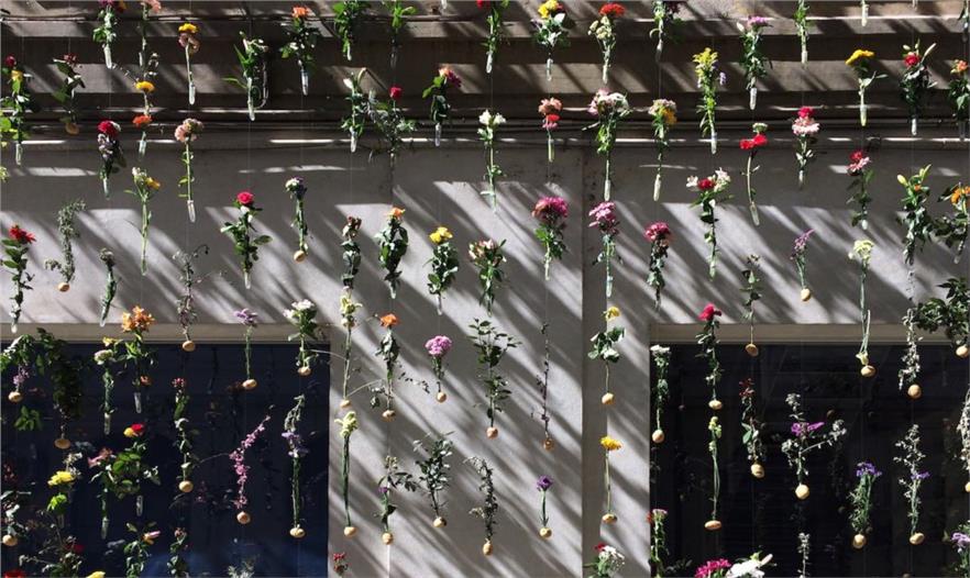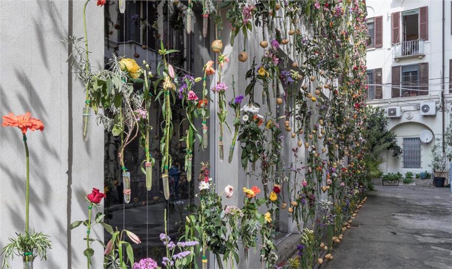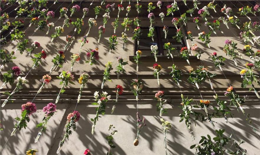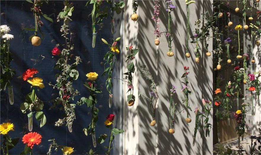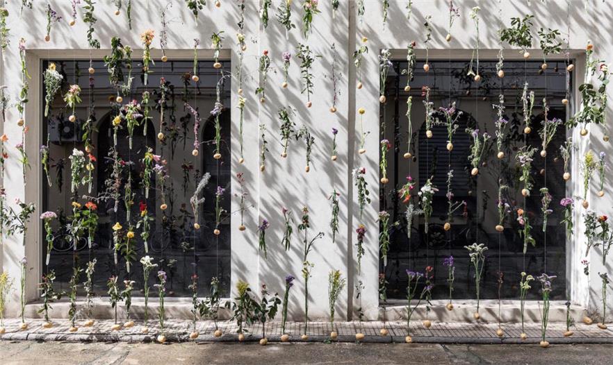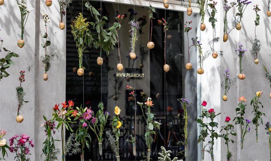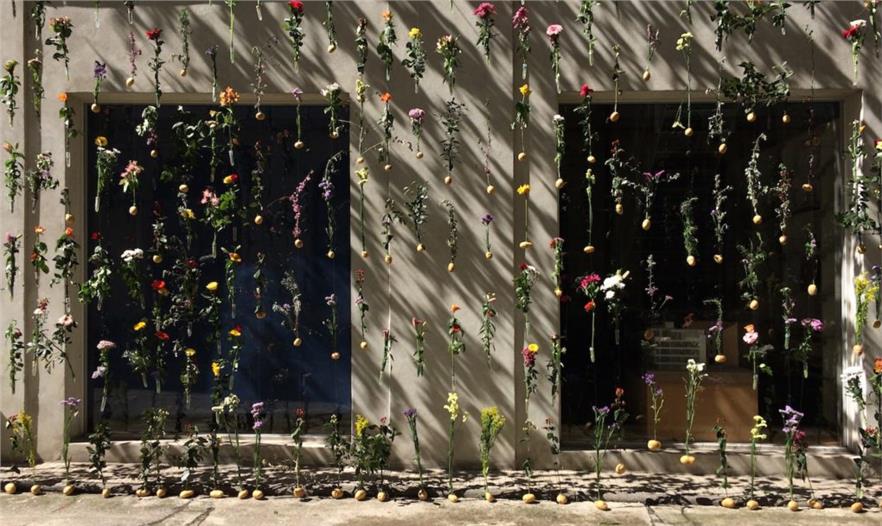 為了延伸這些嫁接花的壽命,設(shè)計(jì)師使用古老的技術(shù)將植物嫁接到土豆上。這些土豆提供這些花朵的結(jié)構(gòu)基礎(chǔ)和營(yíng)養(yǎng)。這些花朵和植物的芳香經(jīng)由戶(hù)外的天然香氣得以增強(qiáng)。Flowerprint園藝立面于2017年4月4日持續(xù)到2017年4月9日。