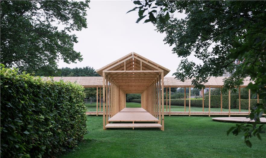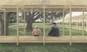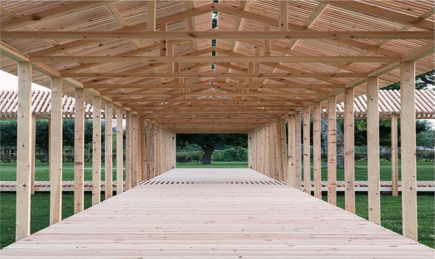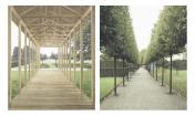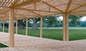 這四個(gè)室外空間的共同之處在于他們的兩側(cè)都是被新園亭所包裹的。 園亭的目的在于從細(xì)節(jié)讓人們感受到空間的不同。室外空間由灌木,樹木,草坪和建筑來增加其豐富度。還可以通過添置家具或是舞臺(tái)的手法。除了建筑部分,人們選擇的散步方向決定了他們將會(huì)體驗(yàn)到的空間:從陽光下走過或者從林蔭下穿過。 設(shè)計(jì)中還強(qiáng)調(diào)了五感的感知,在腳下的木構(gòu)建吱吱作響,松木的氣味和隨手碰觸到的木柱。