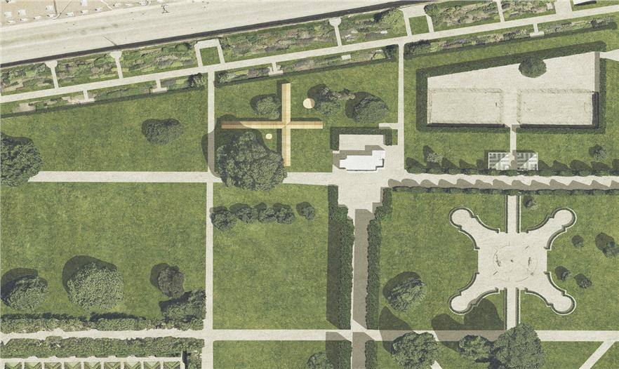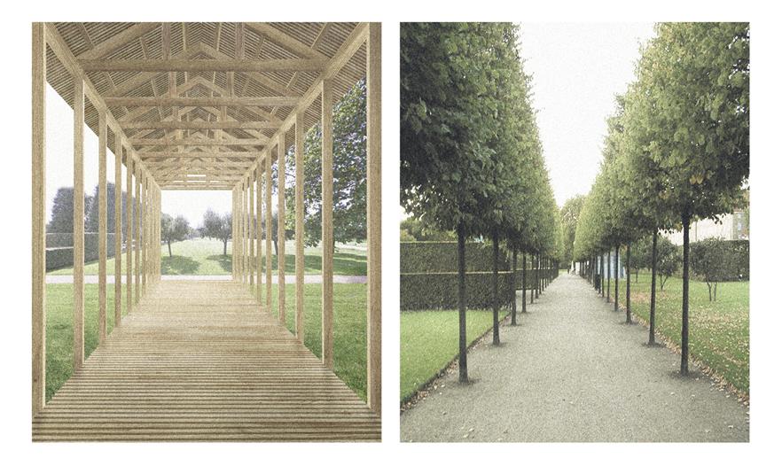 新園亭的設(shè)計(jì)靈感來源于 Otte Heiders 的文藝復(fù)興花園中的戲劇舞蹈和Johan Cornelius Kriegers近期在公園里做的一些巴洛克風(fēng)格娛樂項(xiàng)目。綠樹成蔭的道路和花園按照嚴(yán)格的幾何形狀排列,而道路以正交的方式呈現(xiàn),與建筑建構(gòu)交相呼應(yīng)。