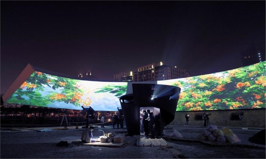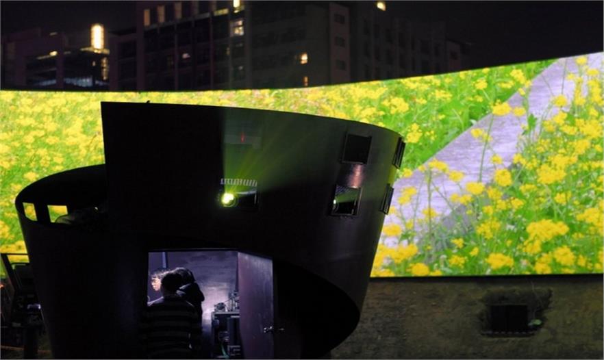 影機融接環(huán)形投影,呈現(xiàn)「日月」及「四時」兩篇影片。