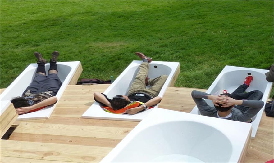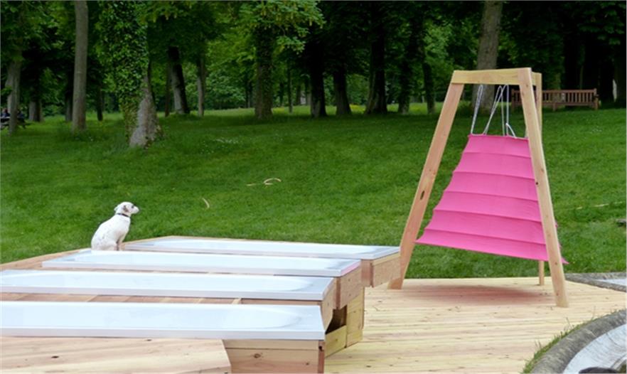 這個(gè)有趣的裝置位于chamarande的歷史建筑區(qū)中,這里曾經(jīng)是著名的度假勝地,而且水是非常重要的元素。隨著時(shí)間推移,這里變成了文化藝術(shù)中心,設(shè)計(jì)師通過浴缸這種日常裝置在藝術(shù)展覽和參觀者之間創(chuàng)造了一種全新、動(dòng)態(tài)的交互作用。有些浴缸里雖然沒有水,但放了坐墊,讓那些不想在公共場所洗浴的人們也可以在浴缸里休息。