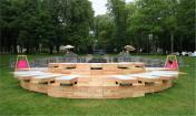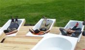 向外延伸的噴泉水曾經(jīng)只是貴族階層的專屬享受,法國事務(wù)所bruit du frigo設(shè)計(jì)的木制浴缸“chamarande les bain”被安放在公園中心,為公眾提供了一個(gè)獨(dú)特的休憩地。