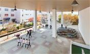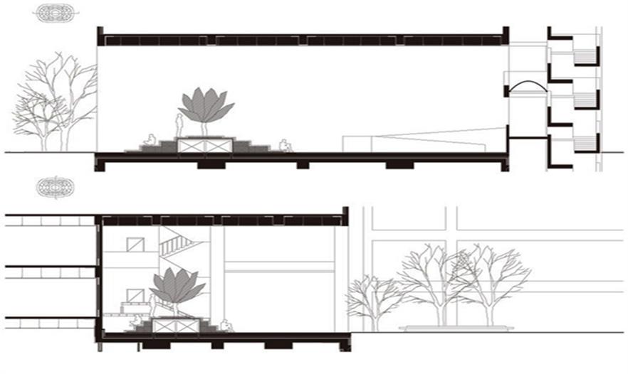 “花墊”位于富川市科技園1號街區(qū)的底層架空柱空間,藝術(shù)家崔正化用回收硬件制作而成的雕塑“伊人如花”也位于此。現(xiàn)有的底層架空柱空間有8m高的天花板,盡管該空間尺度寬闊,并占據(jù)了該高層工廠街區(qū)的顯要位置,但這一部分并沒有得到很好的利用。因此,建筑師設(shè)計了一個聚集空間,以便于工廠員工在此休息、聚會或開展各種戶外表演活動。同時,還充當(dāng)花朵雕塑的基座。