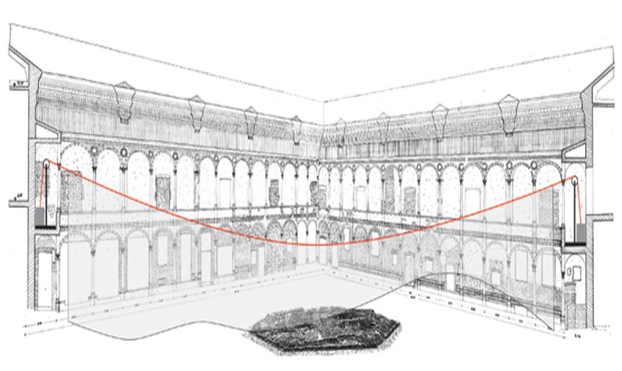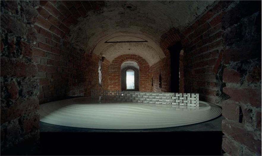 “陶瓷云”第一次運用陶瓷作為結(jié)構(gòu)材料。casalgrande公司的大型元件通過標準化的產(chǎn)品擺脫了通常使用的簡單涂層并將之轉(zhuǎn)化成一種質(zhì)感和 令人難忘的三維空間光影效果。最終的設(shè)計呈現(xiàn)出一個三維空間結(jié)構(gòu),它運用了創(chuàng)新的陶瓷元件。大塊的 炻瓷板經(jīng)機械處理和特殊設(shè)計的金屬件相連組成了這些元件。作為整體, 這個裝置長40米,高7米,看起來就像一座巨大的建筑體。
