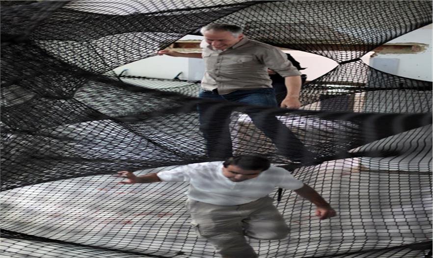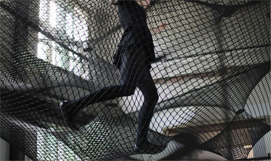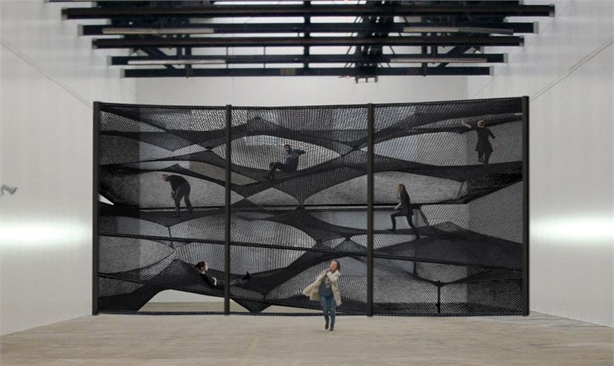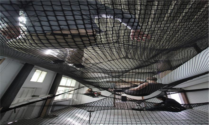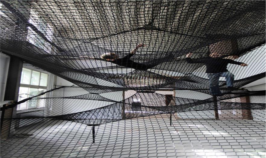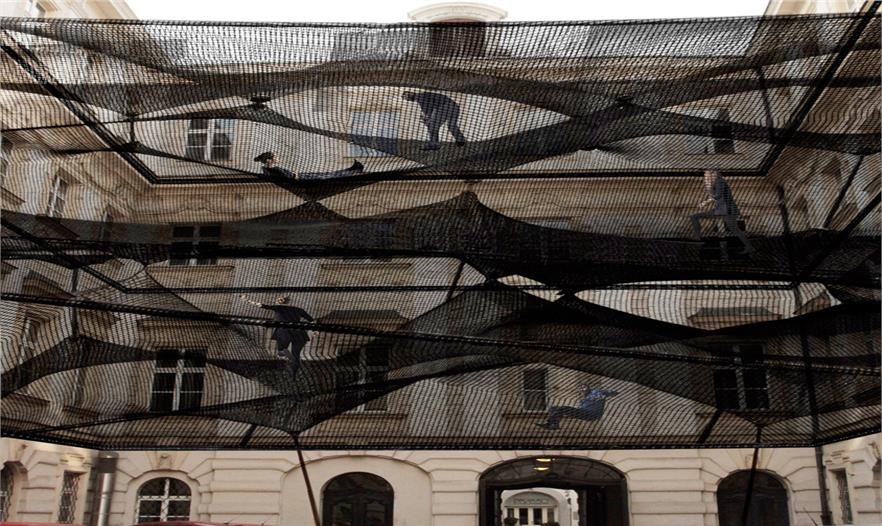這些網(wǎng)是多層、靈活、開放的,一個接一個的連接,構(gòu)成了一個“漂浮的景觀”,吸引人們前來攀爬和探索。最后它成為了一個與不穩(wěn)定性、漂浮和回歸主題有關(guān)的一個社會雕塑。游客應該在地面上進入這個裝置,攀爬這個透明的結(jié)構(gòu)到達最頂層。或者只是懸掛在一處,就像待在一個巨大的吊床上一樣。