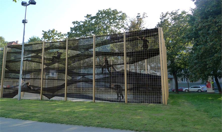 該項目根據(jù)該事務(wù)所對在公共空間建造一個透明的人工景觀的興趣中演化建造而來。設(shè)計師的最終目標是建造封閉的后院,每層都要有一個,讓居民從窗戶中走出來,進入到這個透明的人工景觀當中。這個裝置不僅會使人有飛翔的感覺,但更重要的是讓居住在這里的人們再次體會到后院的概念。這個項目的目標是創(chuàng)建社區(qū)的融合感,因為最近幾年這里的社區(qū)關(guān)系漸漸疏遠了,要為未來的社區(qū)建造一個公共陽臺。人們可以爬到“最后的地板”上,享受日光浴。