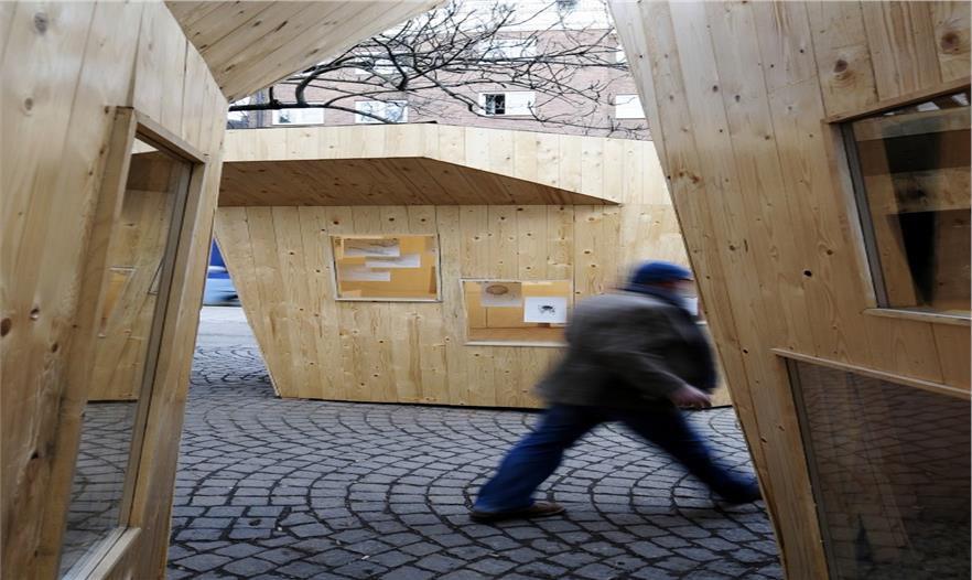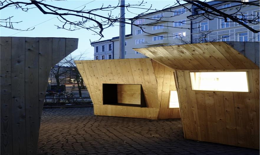 這個展廳是在兩個星期之內(nèi)設(shè)計(jì)和建造完成的,由工作室和奧斯陸建筑與設(shè)計(jì)學(xué)院的學(xué)生一起建造。它是為奧斯陸特蕾澤街較大型城市改造規(guī)劃的一部分,目的在于測驗(yàn)這個區(qū)域未來的發(fā)展規(guī)劃方案。